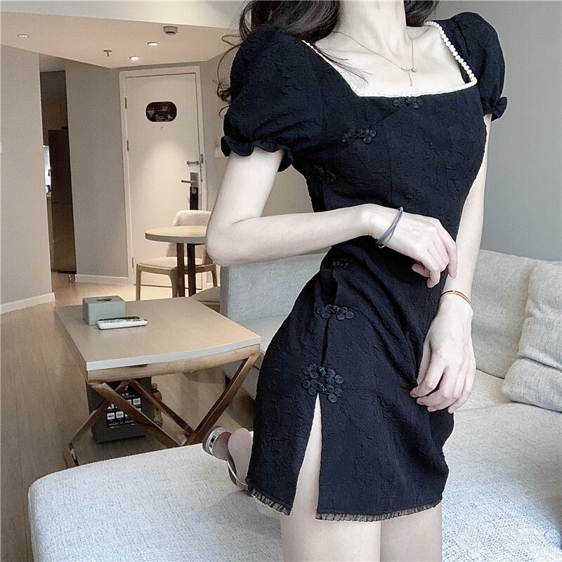 ショートスカート 夏服ウェストカラースリットワンピース 大人ガーリー スウィート キュート カジュアル 夏物 フラワーデザイン スクウェア ウエスト コーデ Marchs76956418977