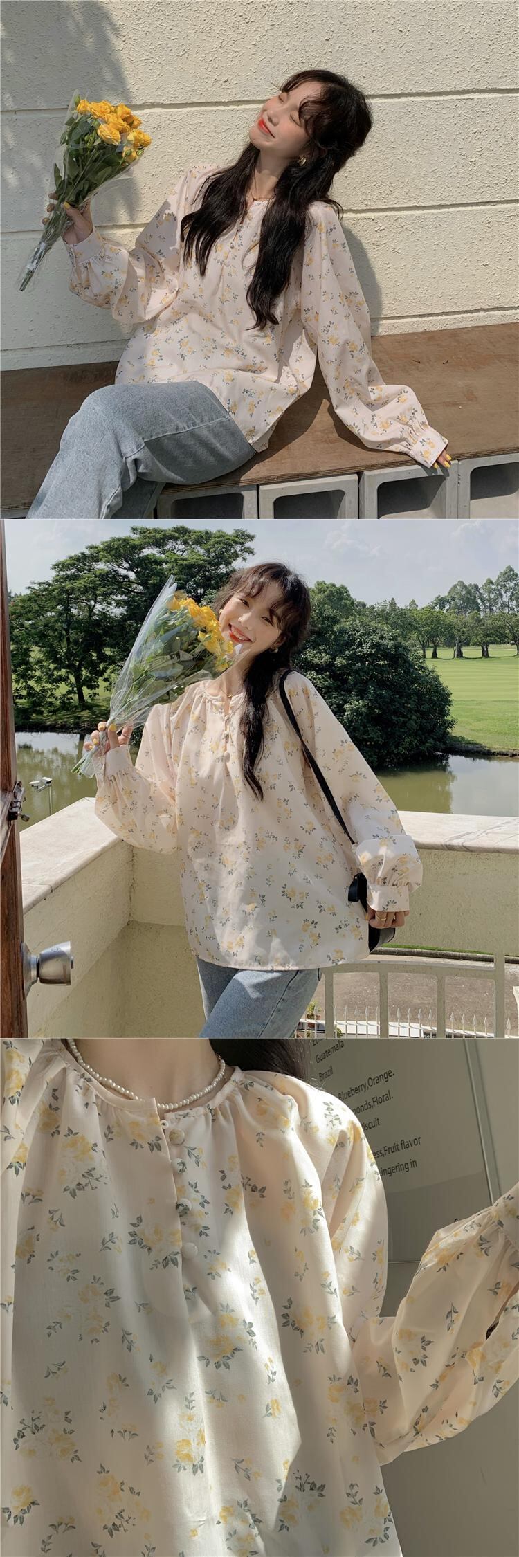フローラルトップス ルーズシャツ スプリングスタイルスリーブ 大人ガーリー スウィート キュート カジュアル 春物 花柄 コーデ Marchs93528914482