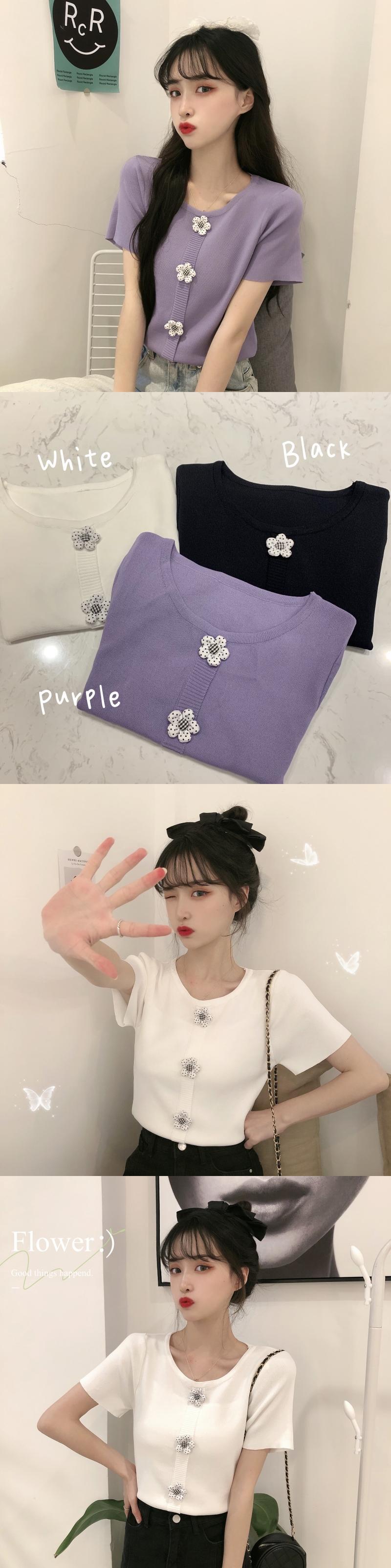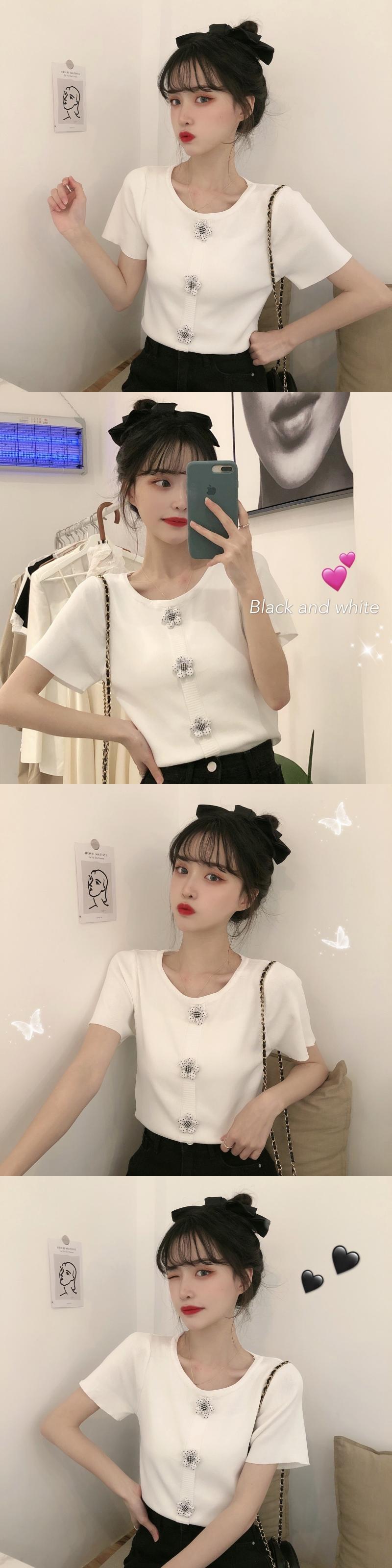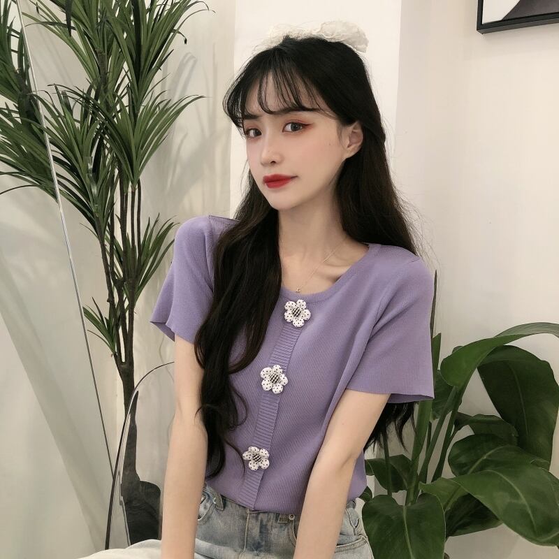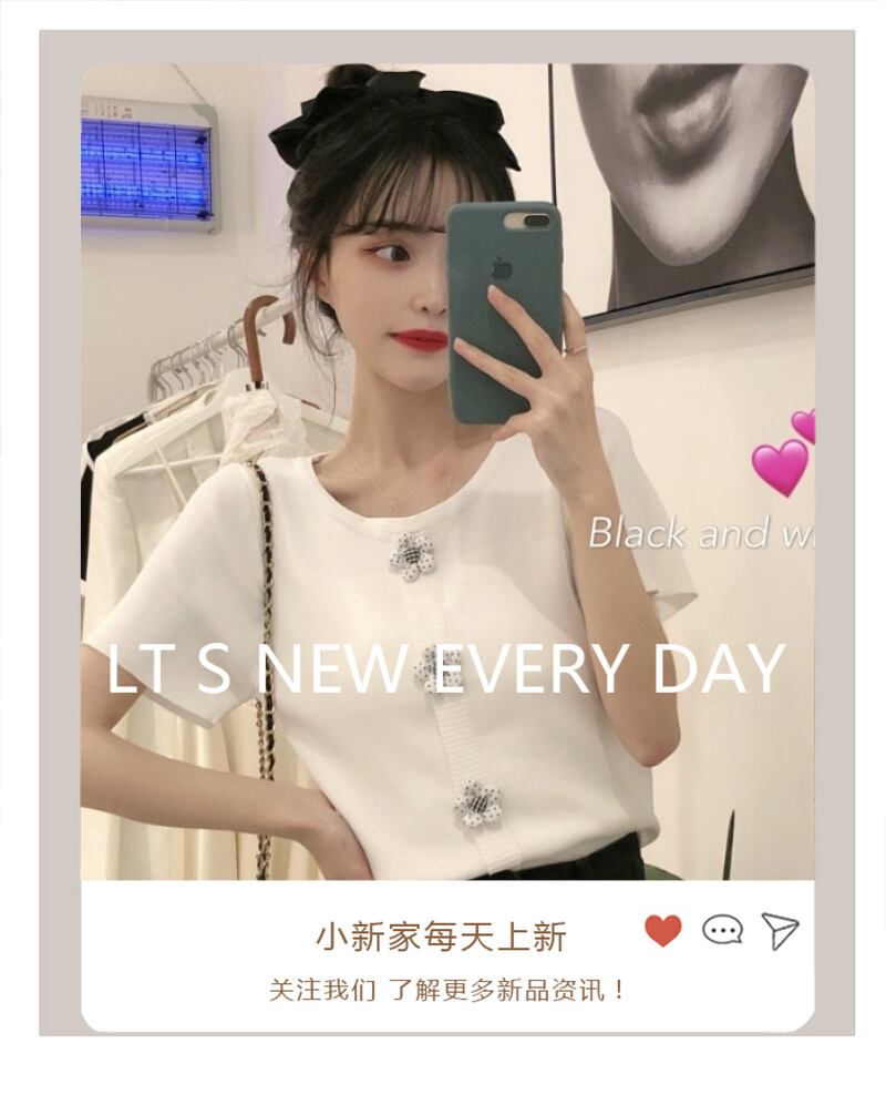スタイルニットショート夏服薄手ホワイトTシャツスリムトップス 夏物 コーデ Marchs87195114323