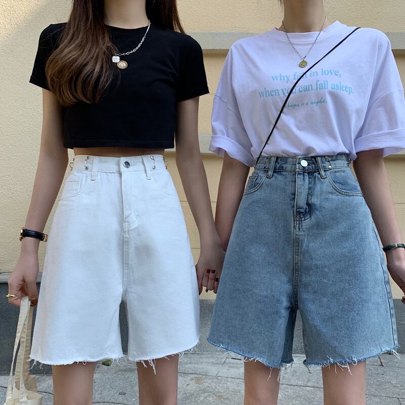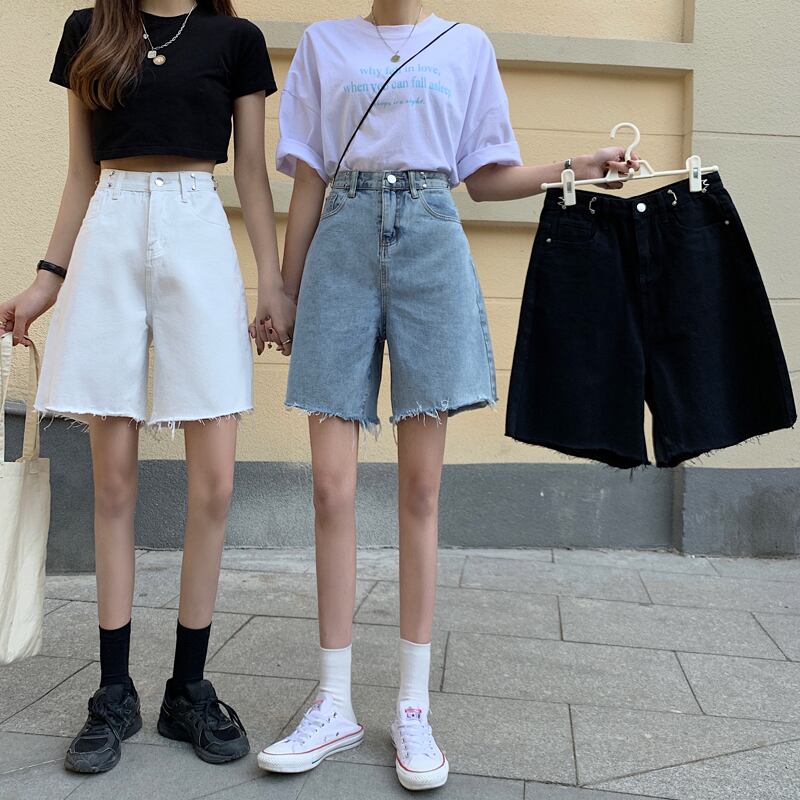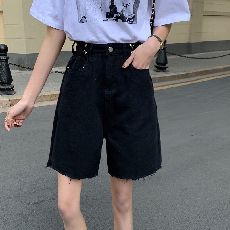 ブラックショーツ ハイウェストウェスト夏服ルーズジーンズ パンツ 夏物 ウエスト コーデ Marchs80448300569