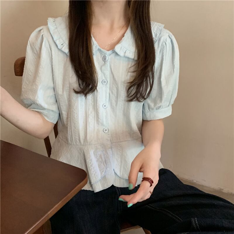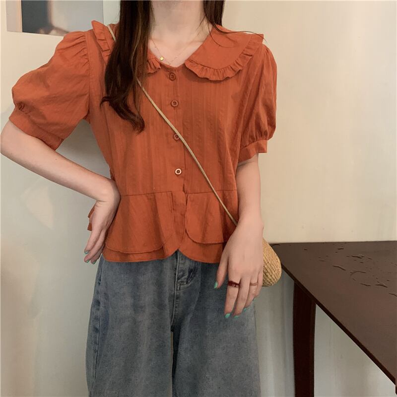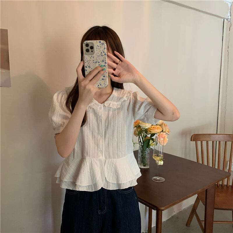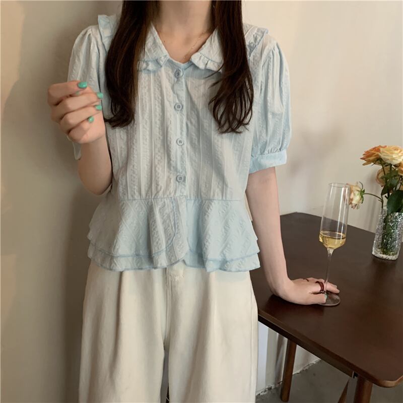 夏服シャツ トップス シフォンスタイルショートTシャツ 大人ガーリー スウィート キュート カジュアル 夏物 パフスリーブ コーデ Marchs63022987666