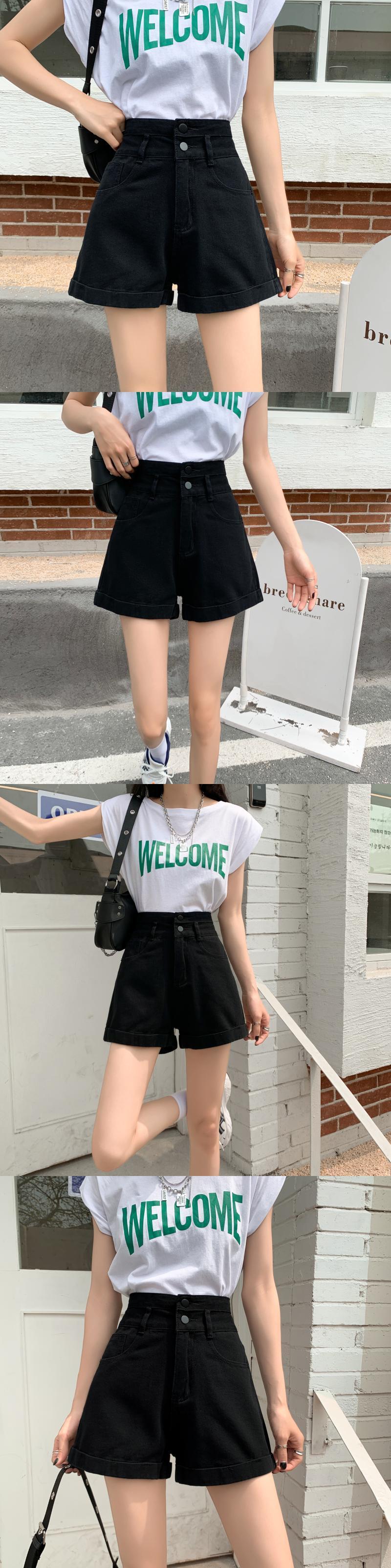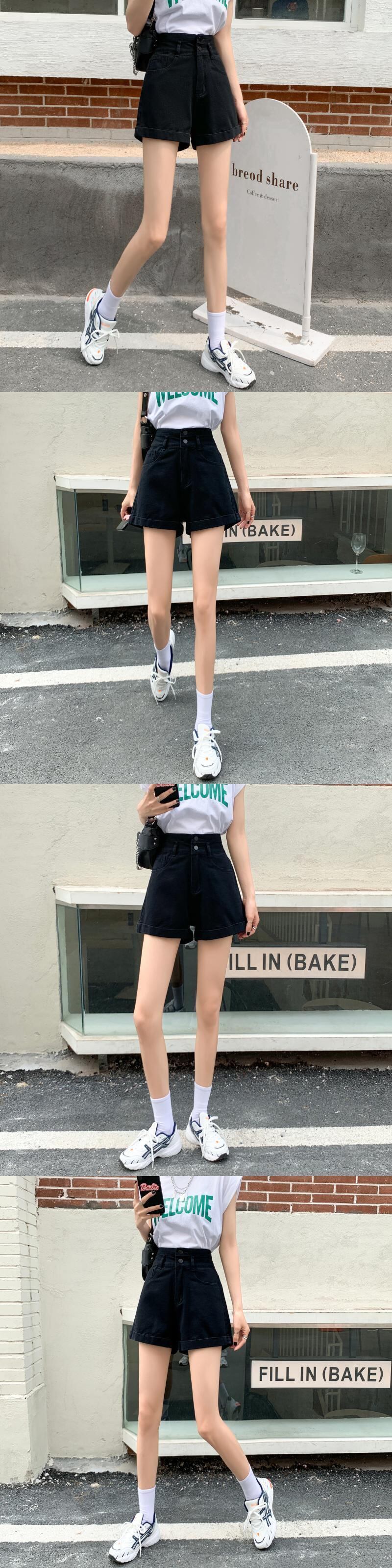 ジーンズ 夏服ハイウェストスリムブラックパンツ ルーズショーツ NEW 夏物 ウエスト コーデ Marchs7600634655