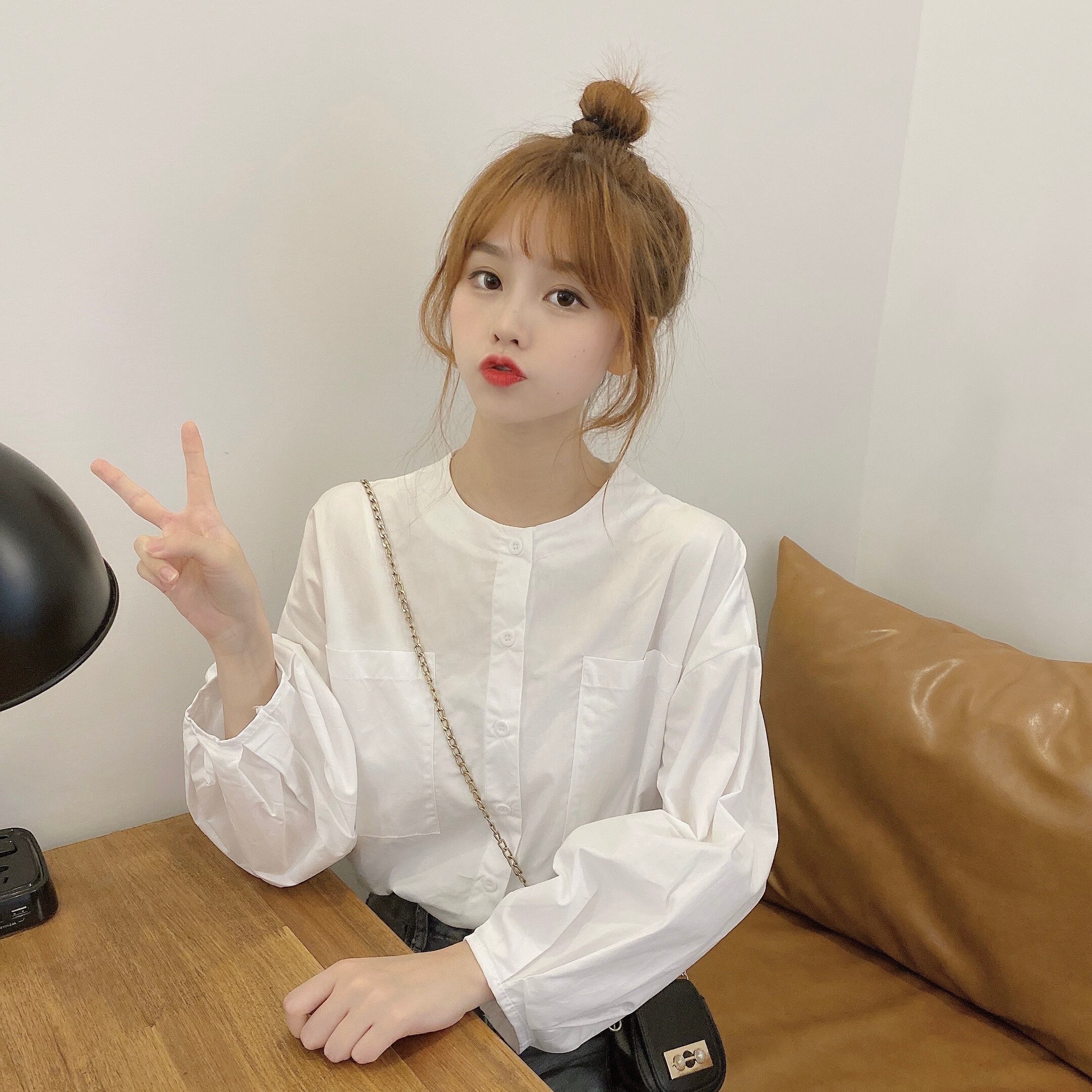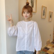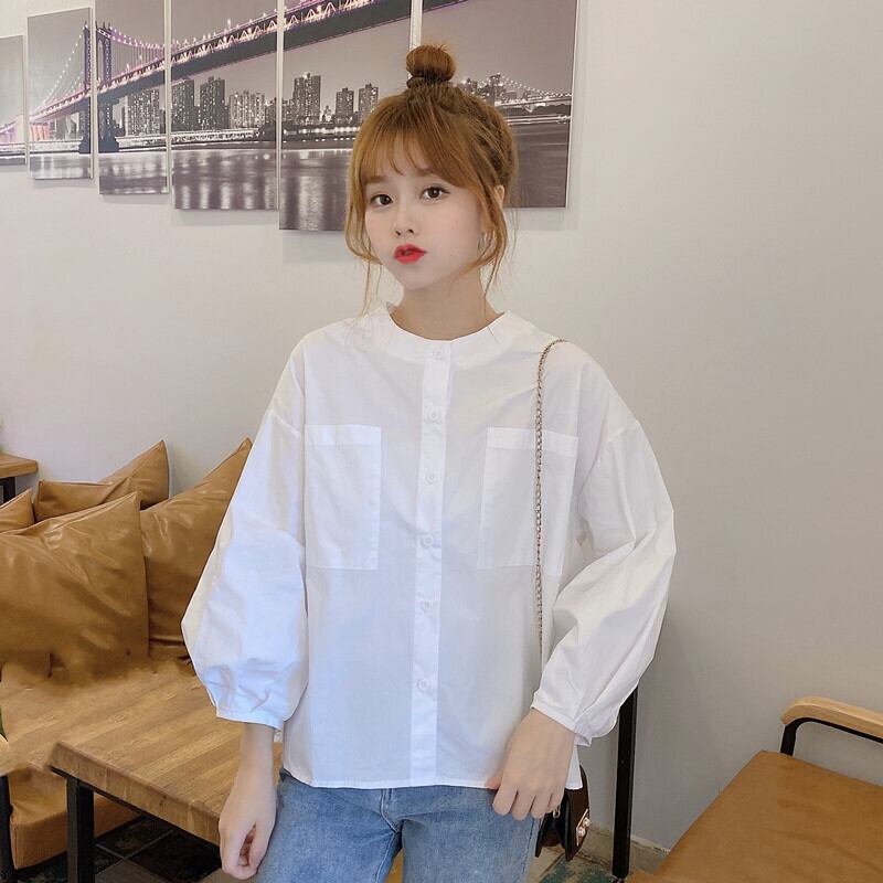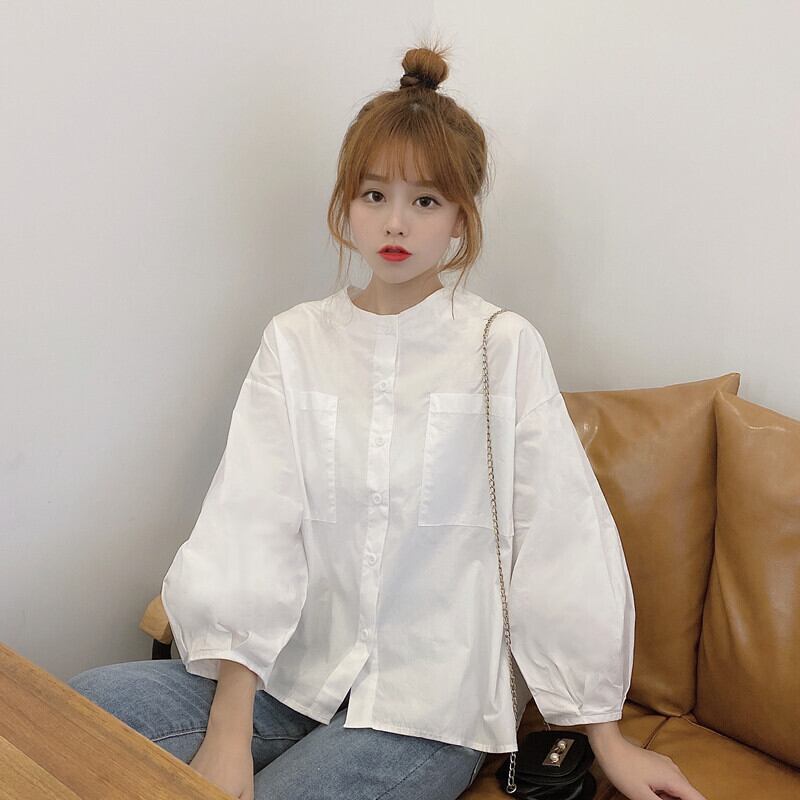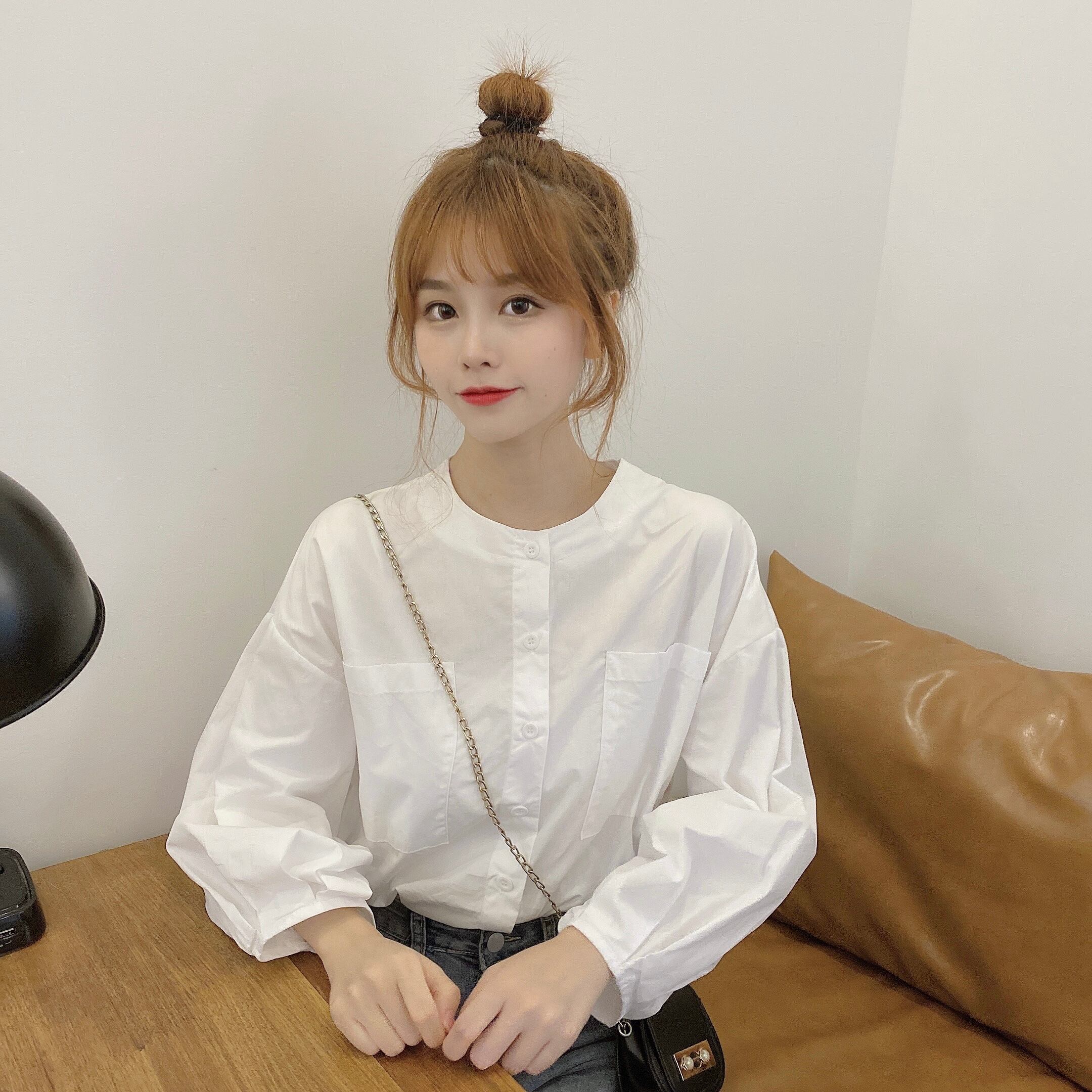 カラーホワイトシャツ スプリング秋物スリーブトップス NEW ランタンスリーブ 大人ガーリー スウィート キュート カジュアル 春物 オータム コーデ Marchs58936915859