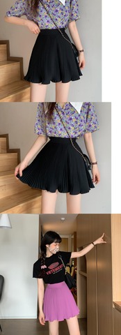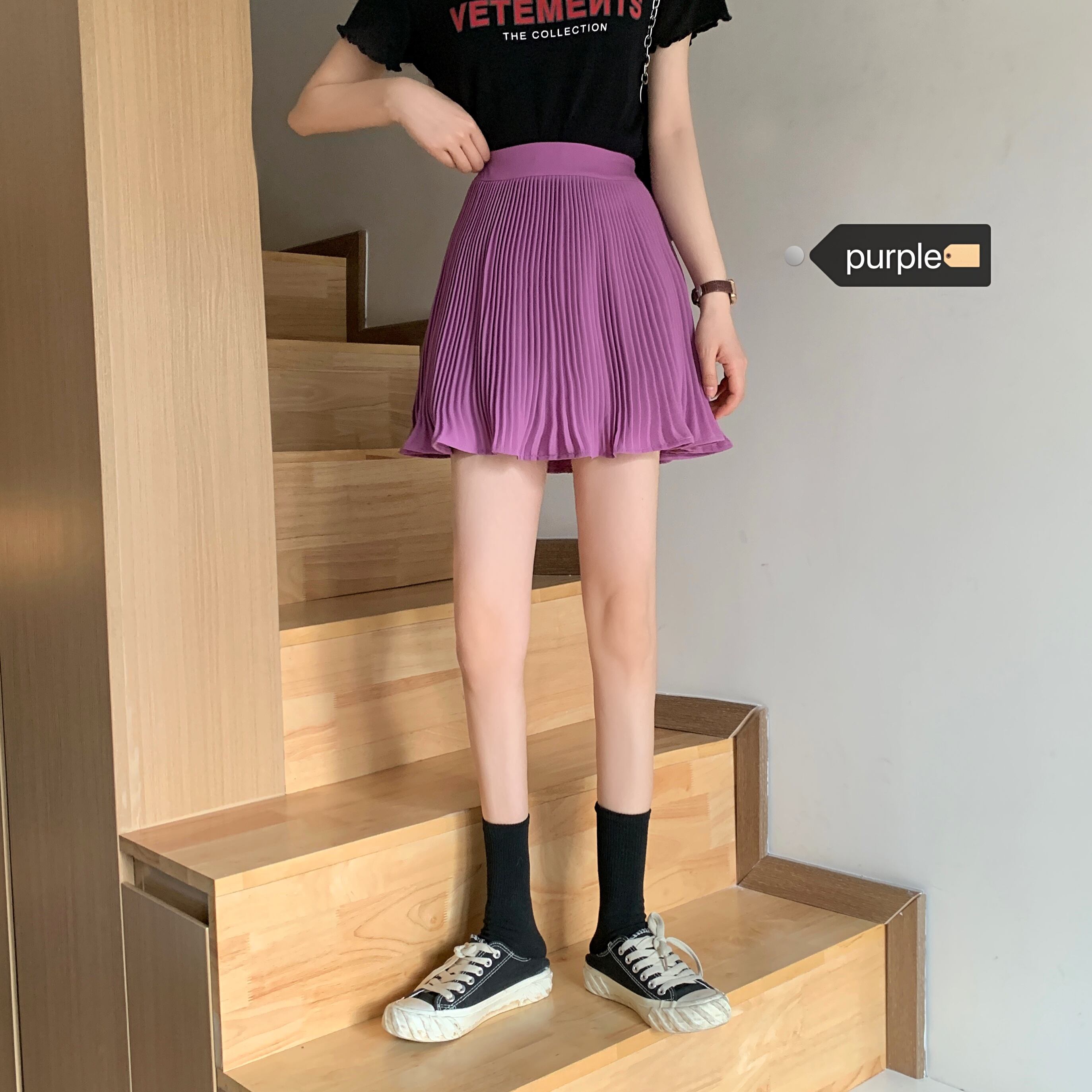 プリーツスカート 夏服ハイウェストウェストAラインショート 夏物 パープル ウエスト コーデ Marchs72501165134
