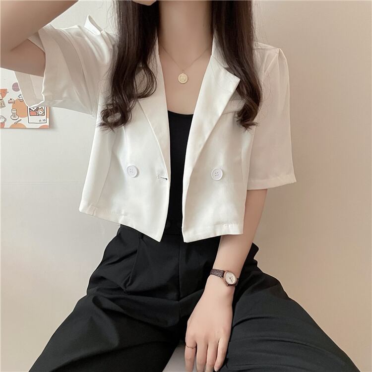 ブルーショートジャケット 夏服薄手ハイウェストトップス 夏物 ウエスト コーデ Marchs29131512707