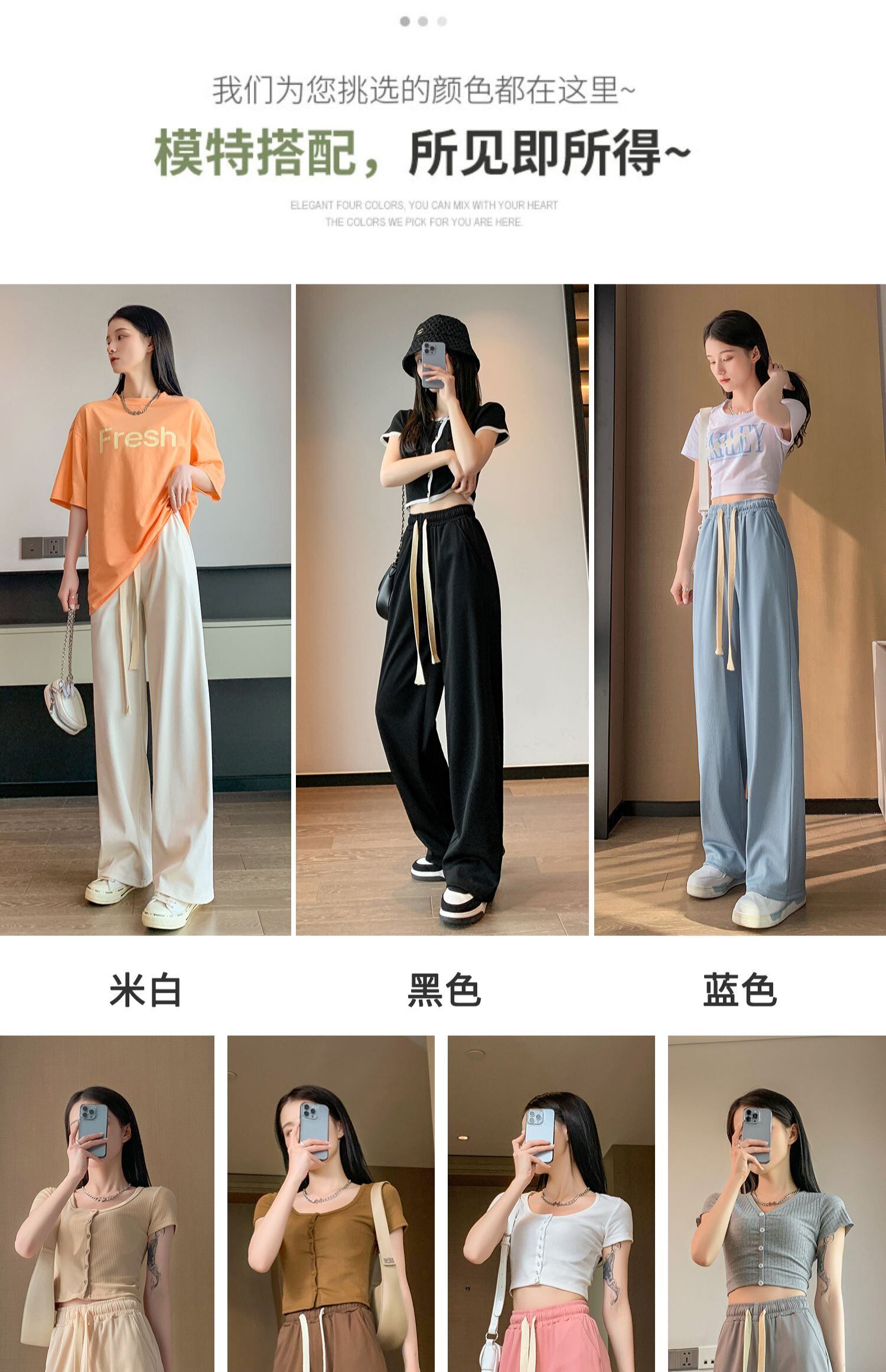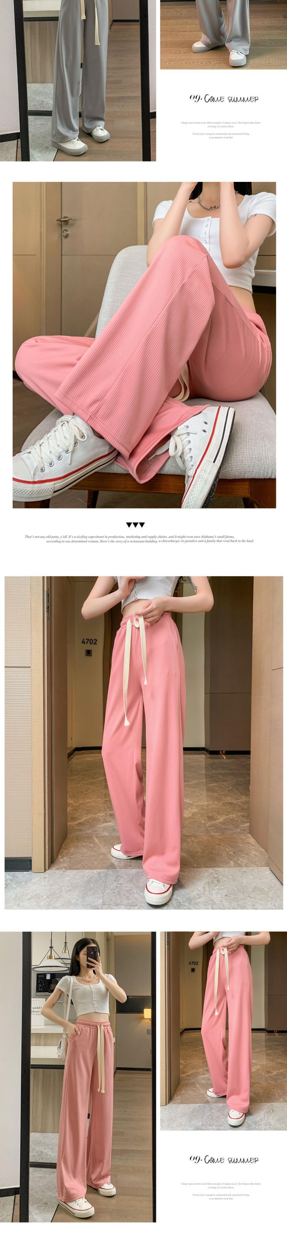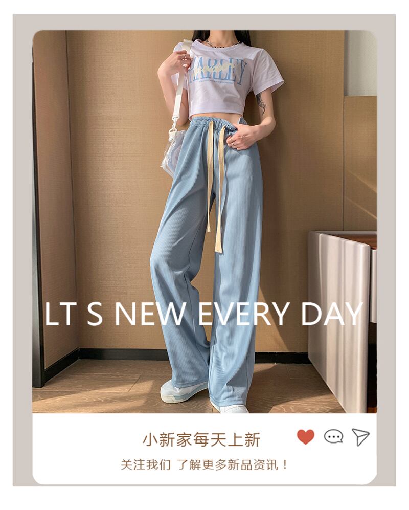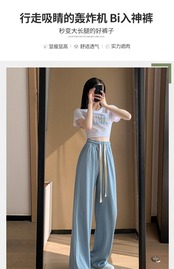 ブルーワイドレッグパンツ ハイウェストウェスト夏服ルーズカジュアル 夏物 ワイドパンツ シルク ウエスト コーデ Marchs7497795859
