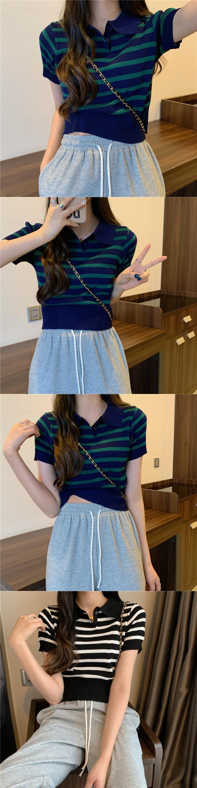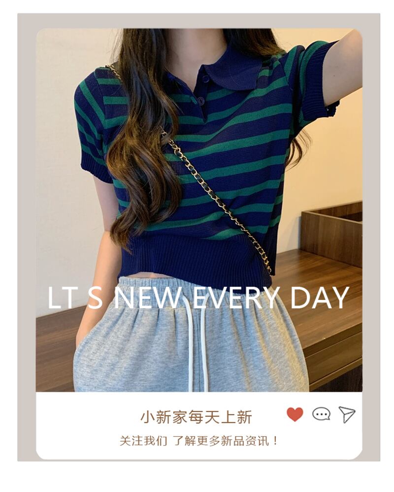 ショートTシャツシャツ 夏服スタイルストライプハイウェストトップス 夏物 ウエスト コーデ Marchs74840932537