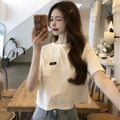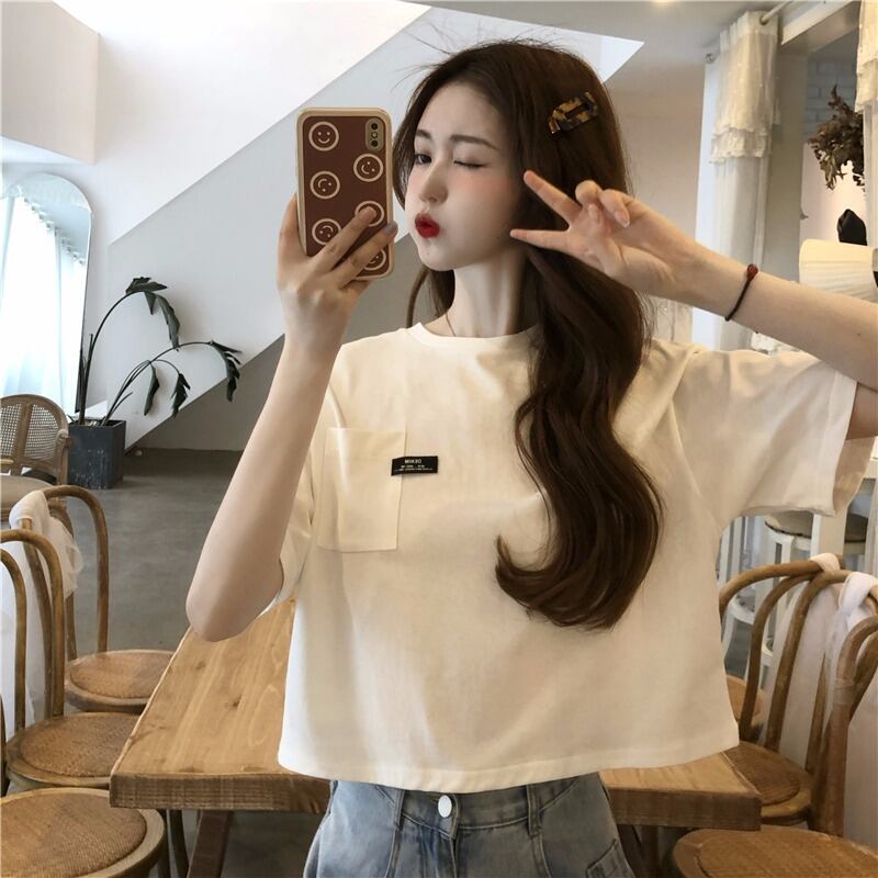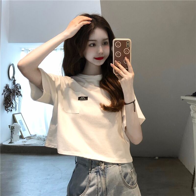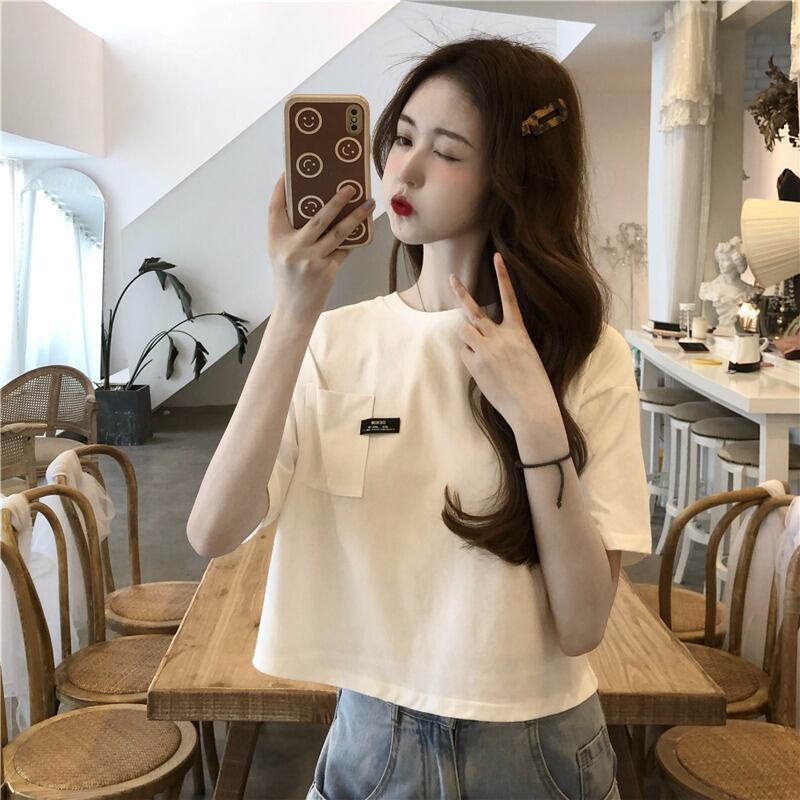 ホワイトショートTシャツシャツ 夏服ハイウェストウェストルーズトップス 夏物 ウエスト コーデ Marchs59554610665