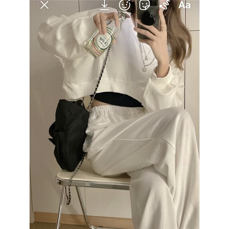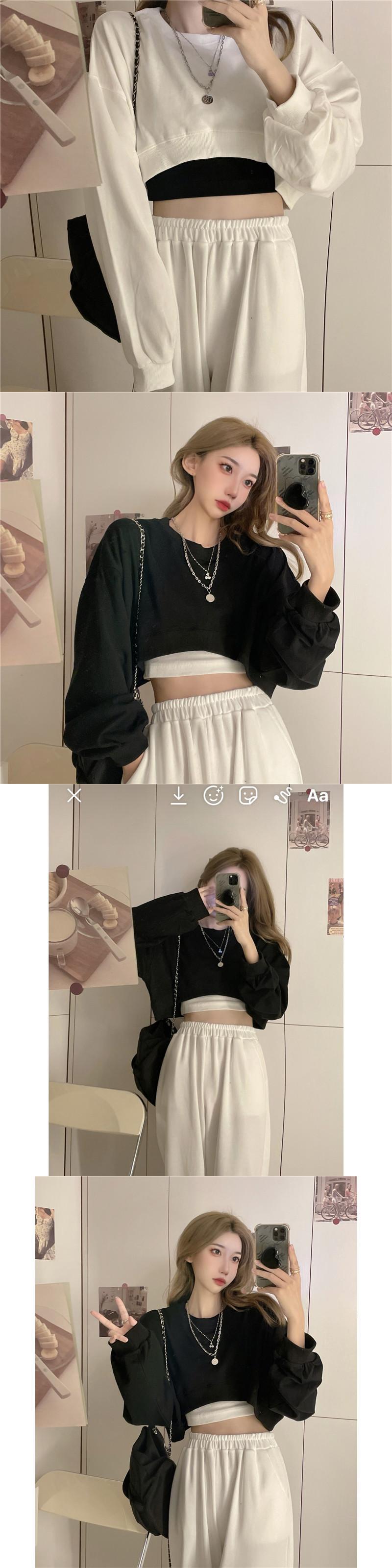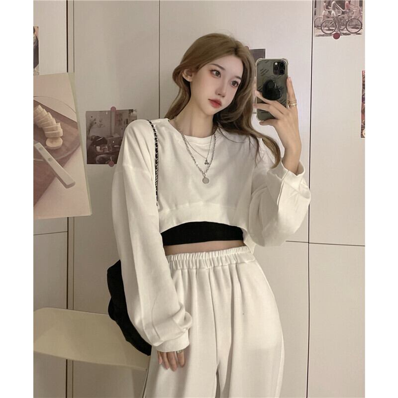 NEWグレーラウンドネックセーター スプリング秋物薄手ルーズ韓国ファッションクロップドショートトップス 春物 オータム Oネック スタイル コーデ Marchs90824673211