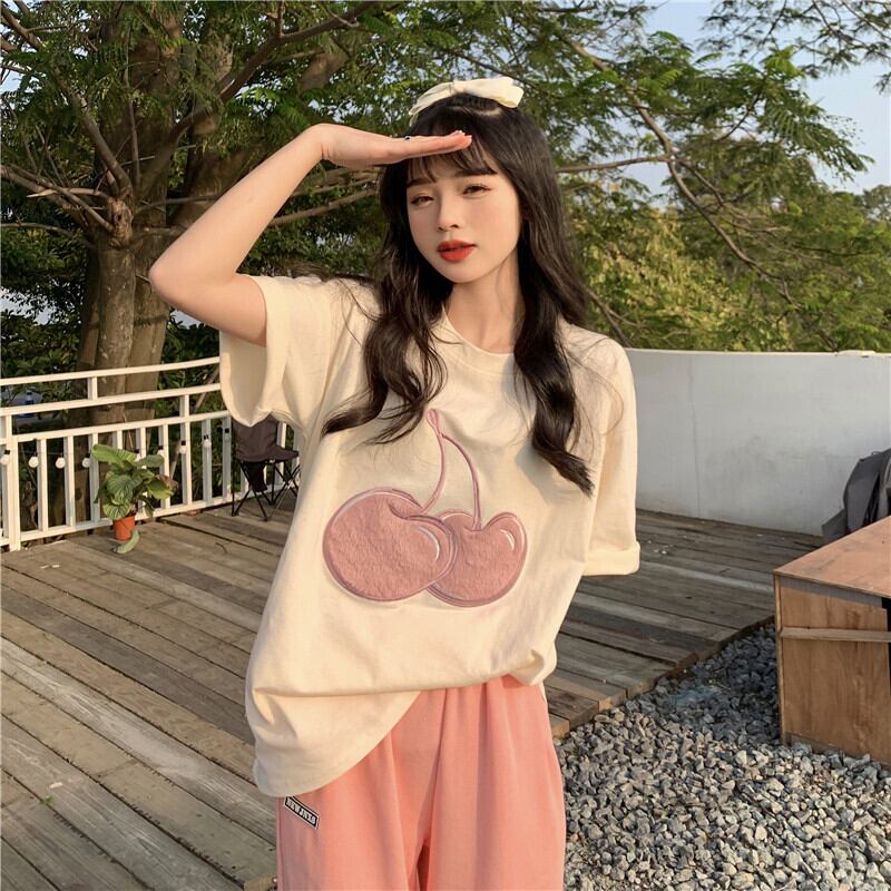 刺繍Tシャツ夏服ルーズ韓国ファッションカジュアルトップス 夏物 スタイル ミドル丈 コーデ Marchs90943411022