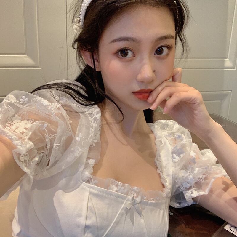 スリーブトップス 夏服ウェストシャツ スタイル レース 夏物 スクウェア ウエスト コーデ Marchs25403536402