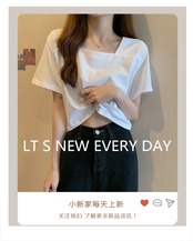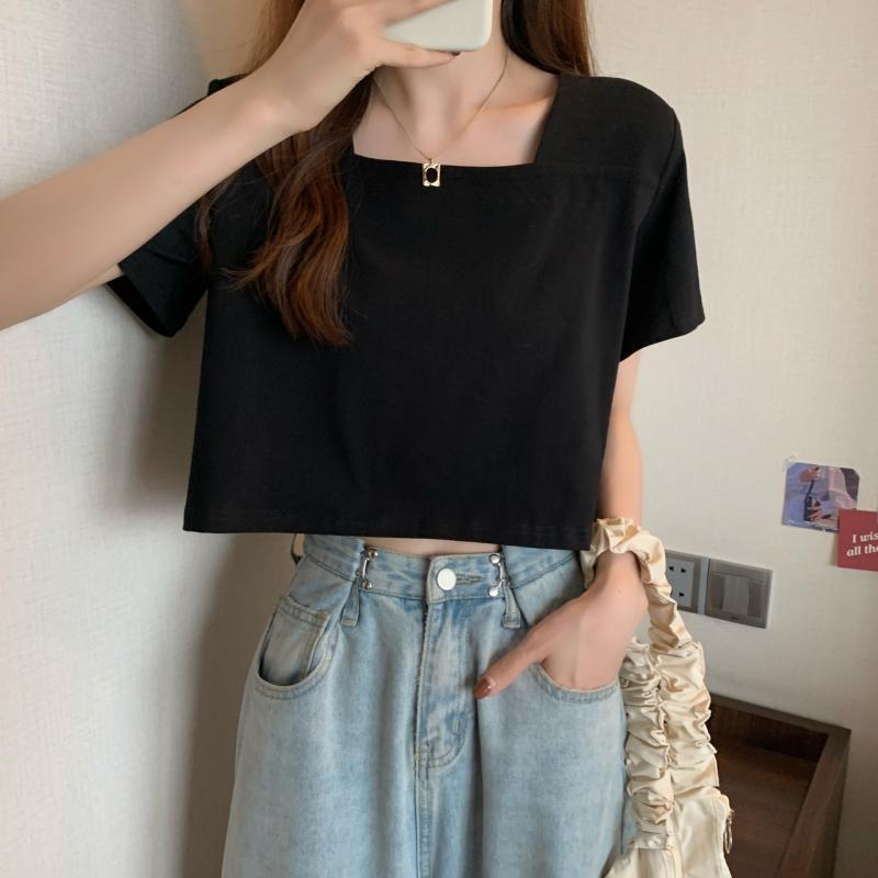 ホワイトショートTシャツハイウェストウェスト夏服ルーズカラークロップトップ トップス 夏物 スクウェア ウエスト コーデ Marchs61323197540