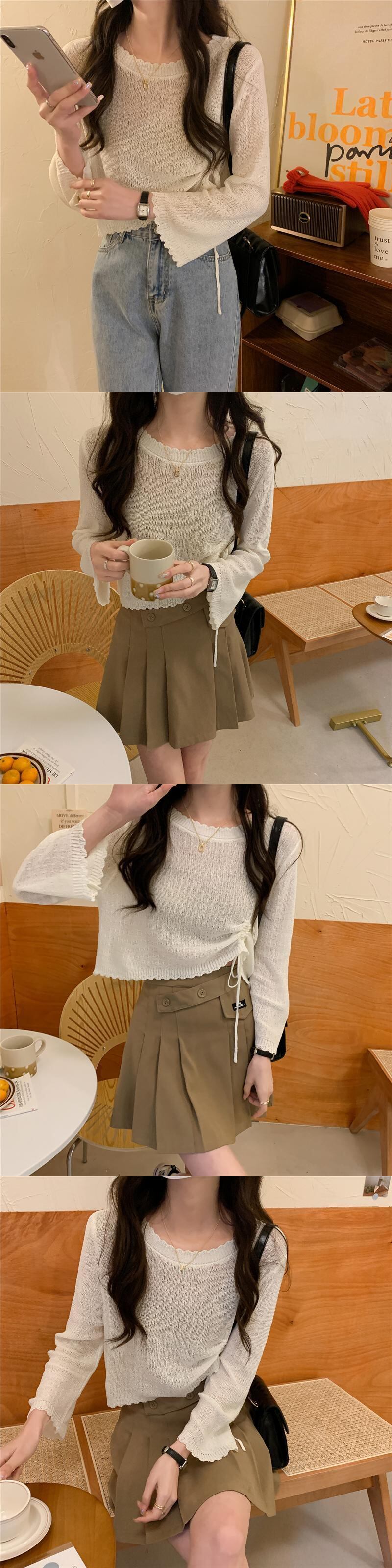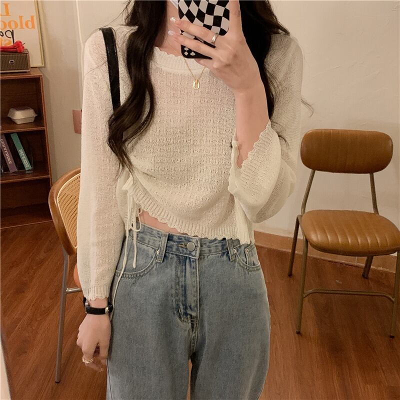 ショートブラウス 夏服ルーズ薄手ニットシャツ プルオーバー ギャザーハイウェストウェストトップス 夏物 ウエスト コーデ Marchs46326046778