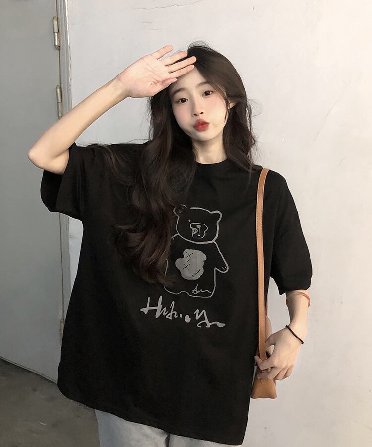 夏服ブラックTシャツNEW韓国ファッションルーズカジュアル 夏物 スタイル コーデ Marchs45998074411