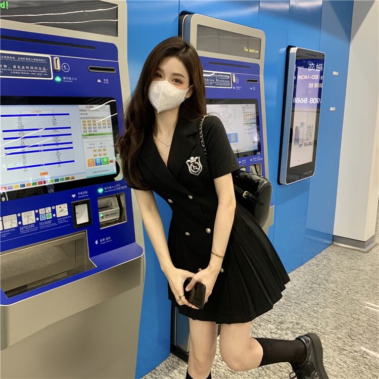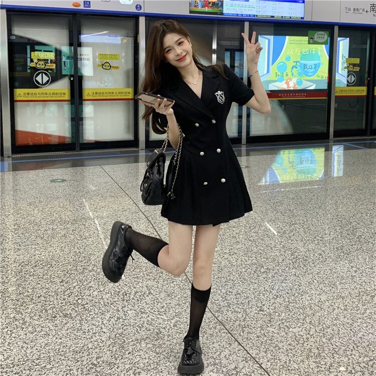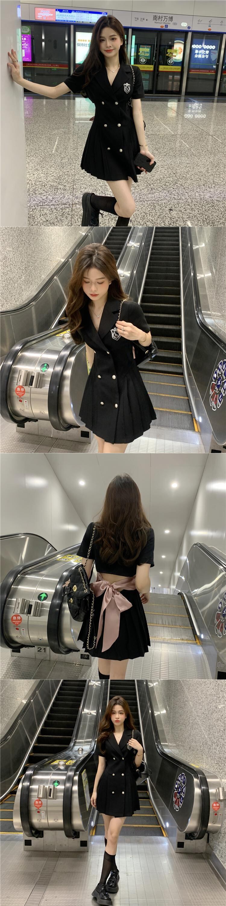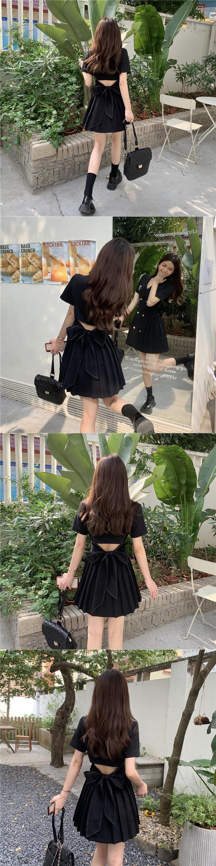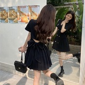 スタイルリボンブラックワンピースウェストバックレススカート 夏服 夏物 ピュア ウエスト コーデ Marchs87915547998