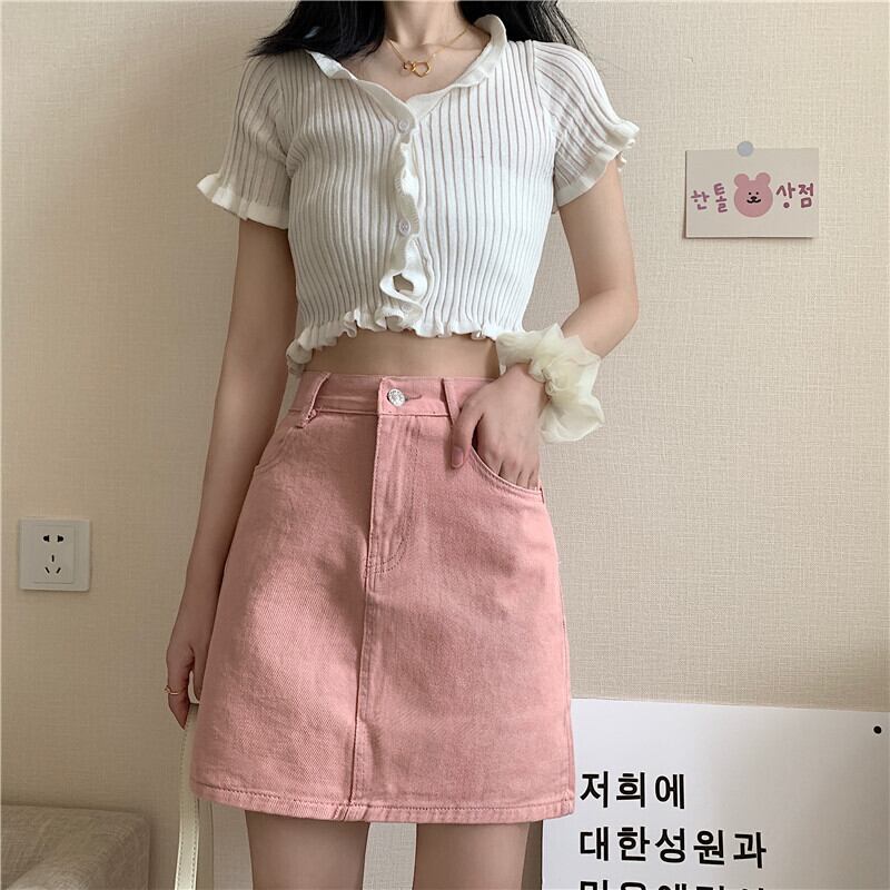スカート 夏服ハイウェストウェスト薄手Aラインショート ピンク 夏物 ウエスト コーデ Marchs56944741229