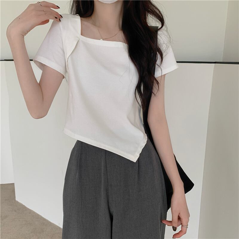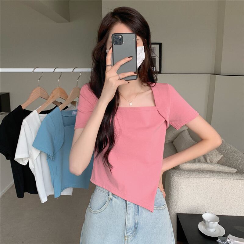 夏服薄手ショートTシャツトップス ピンク 夏物 スクウェア コーデ Marchs39942149708
