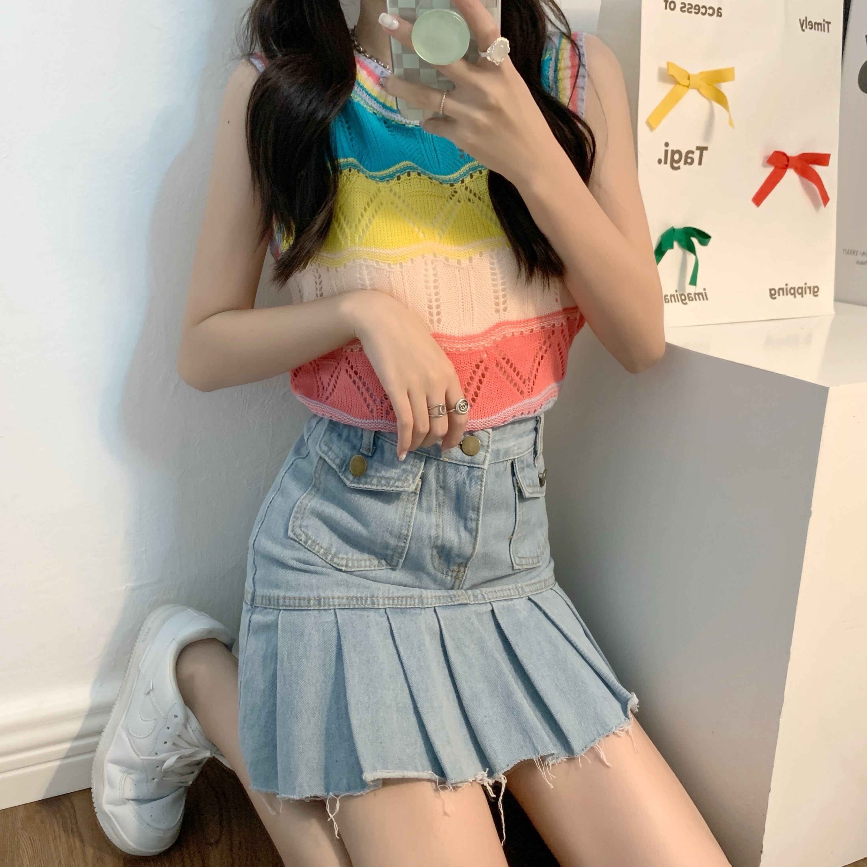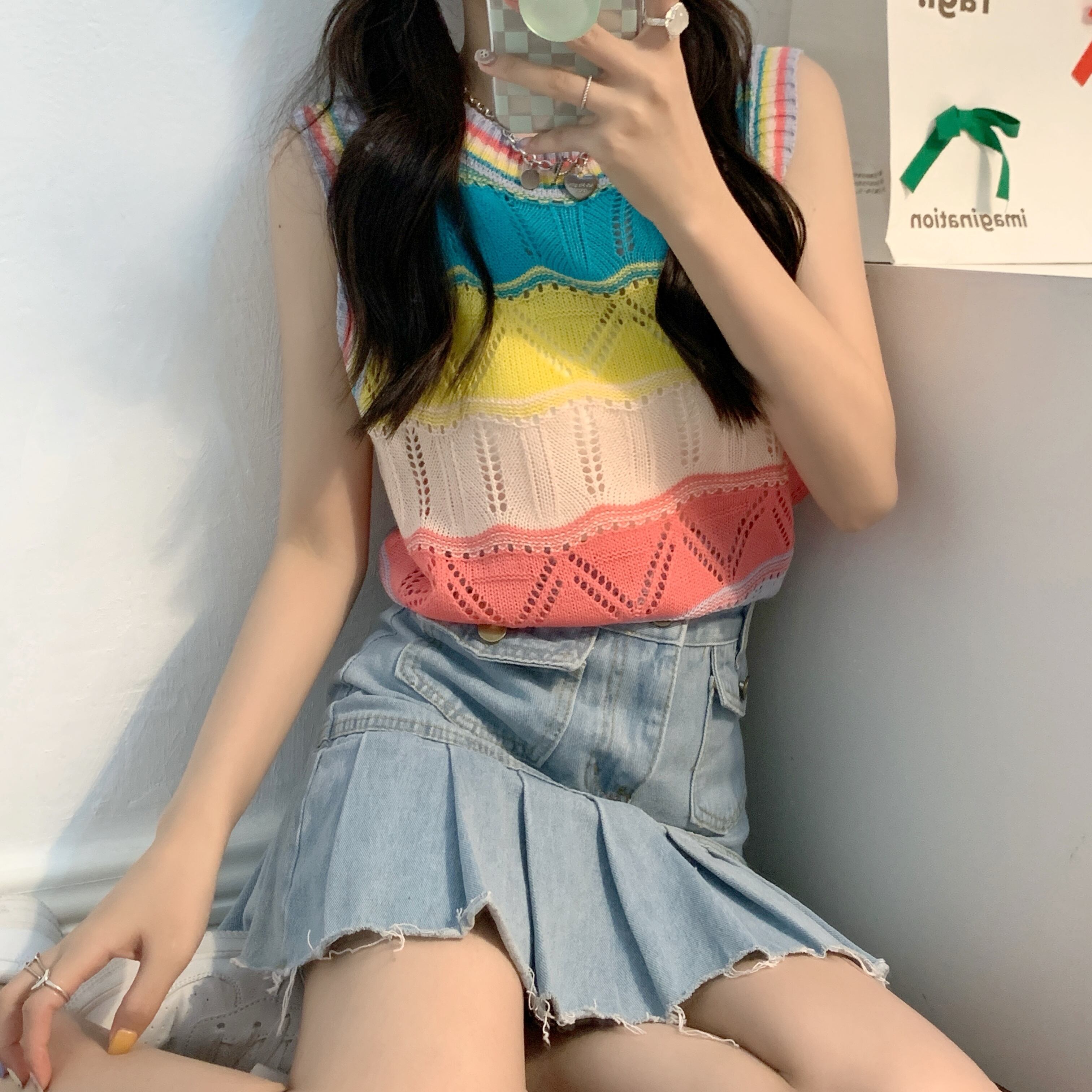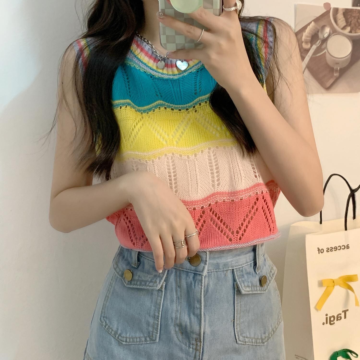 夏服カラーストライプニットノースリーブトップス レディース 夏物 コーデ Marchs75002624905