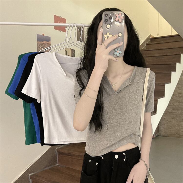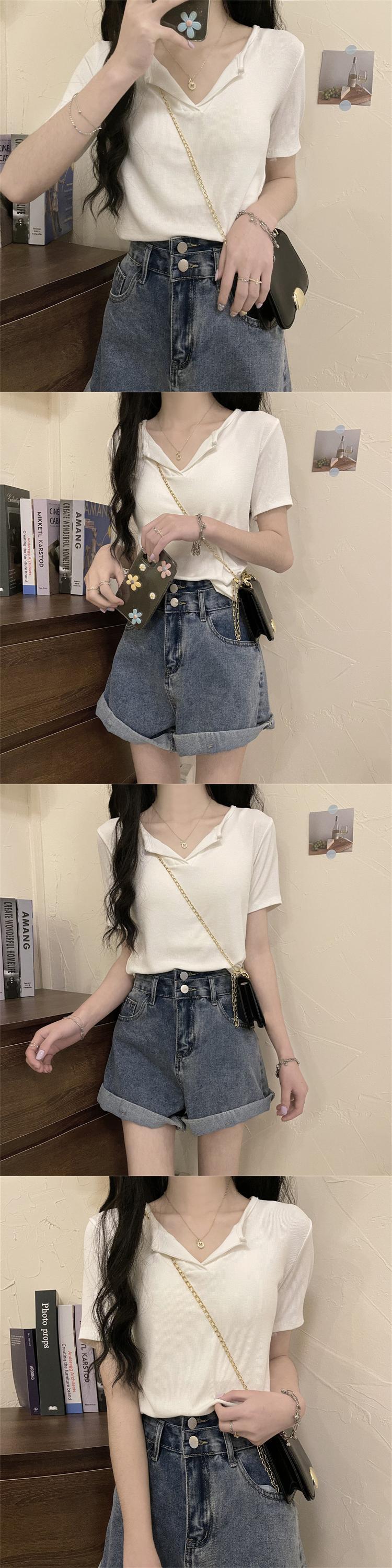 VネックルーズショートTシャツスプリング夏服韓国ファッショントップス NEW 春物 夏物 スタイル コーデ Marchs44782250772
