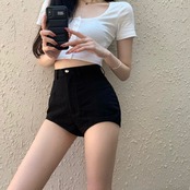 ブラックショーツ 夏服レディースウェスト薄手Aラインパンツ NEW 夏物 ウエスト コーデ Marchs97764364563