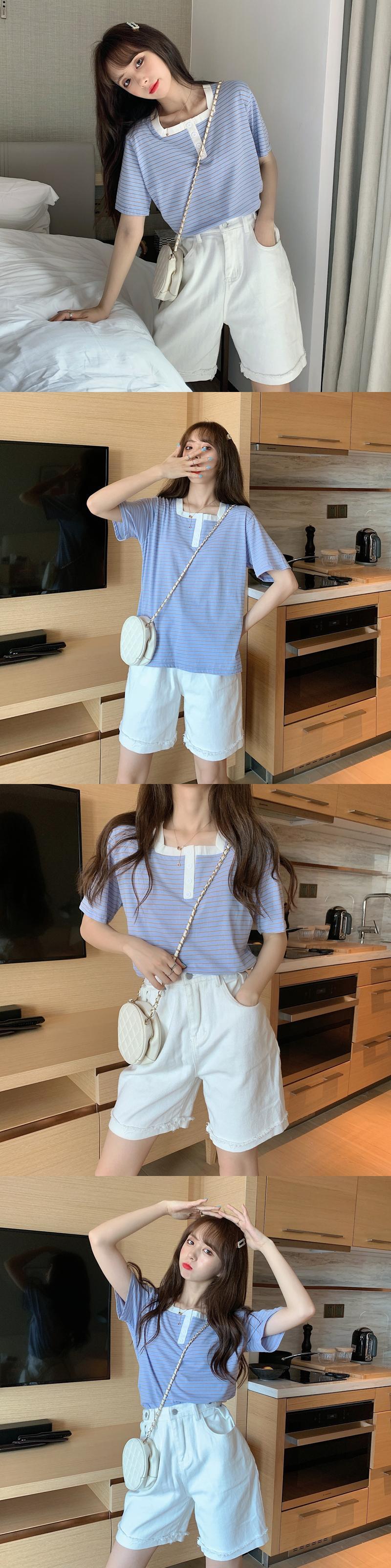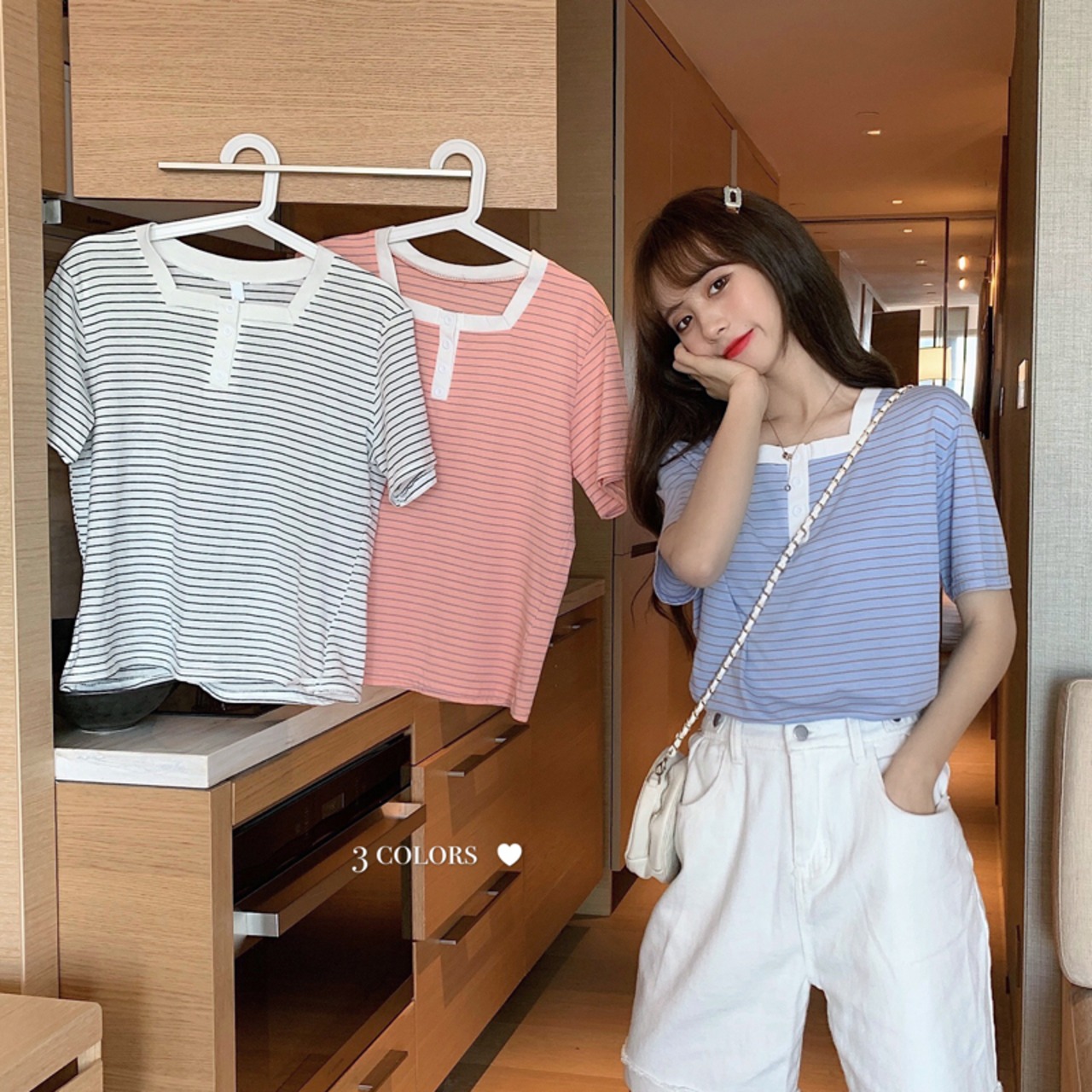 ストライプTシャツシャツ 夏服トップス ゆったり 夏物 スクウェア コーデ Marchs50464813242