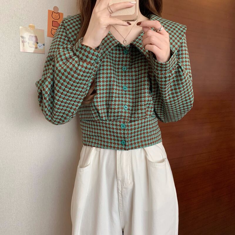 スタンダードシャツ スプリング秋物ルーズショートカラートップス レッド レトロ 春物 オータム コーデ Marchs69214273857