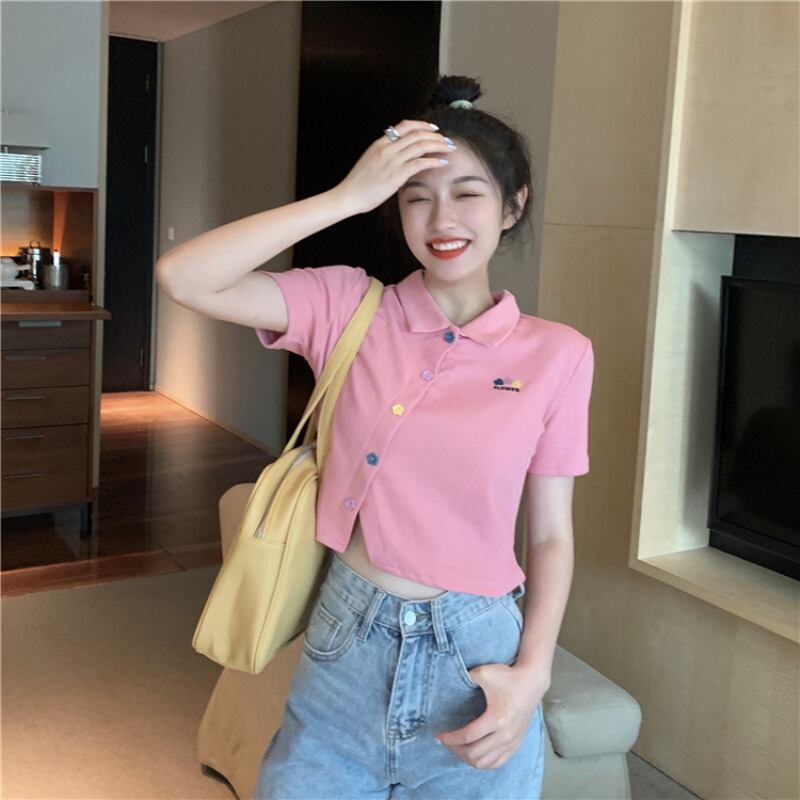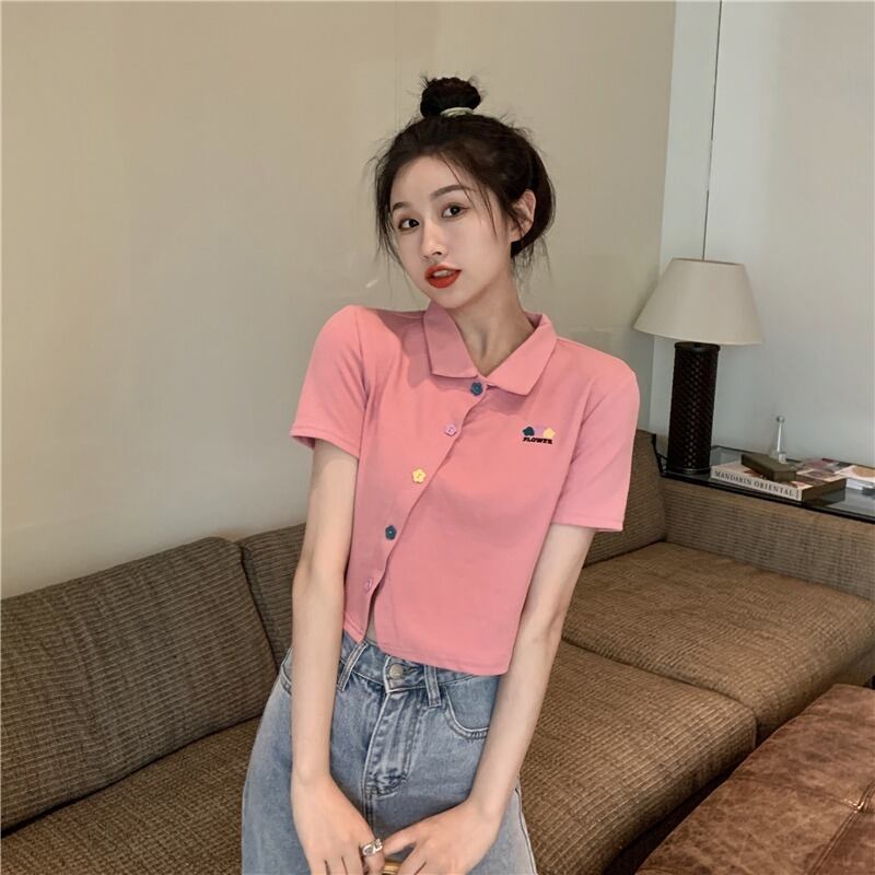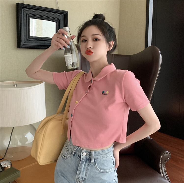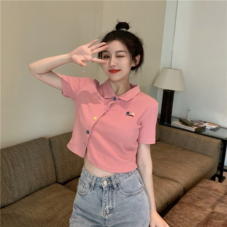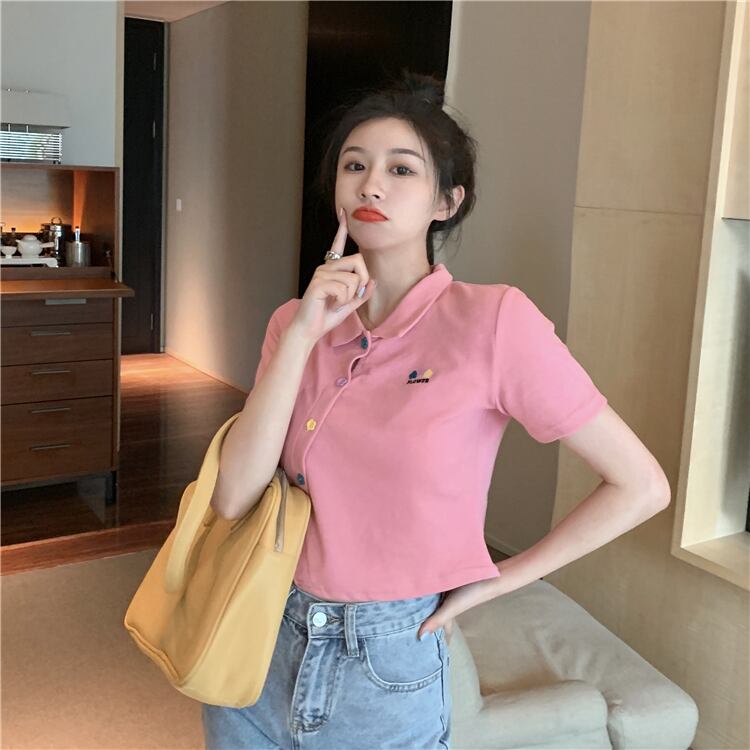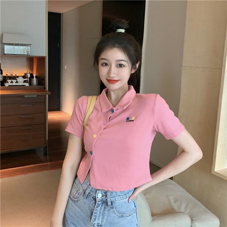 ウェストショートトップス カラー半袖スリーブTシャツ ピンク ハーフスリーブ 大人ガーリー スウィート キュート カジュアル ウエスト コーデ Marchs65221967935