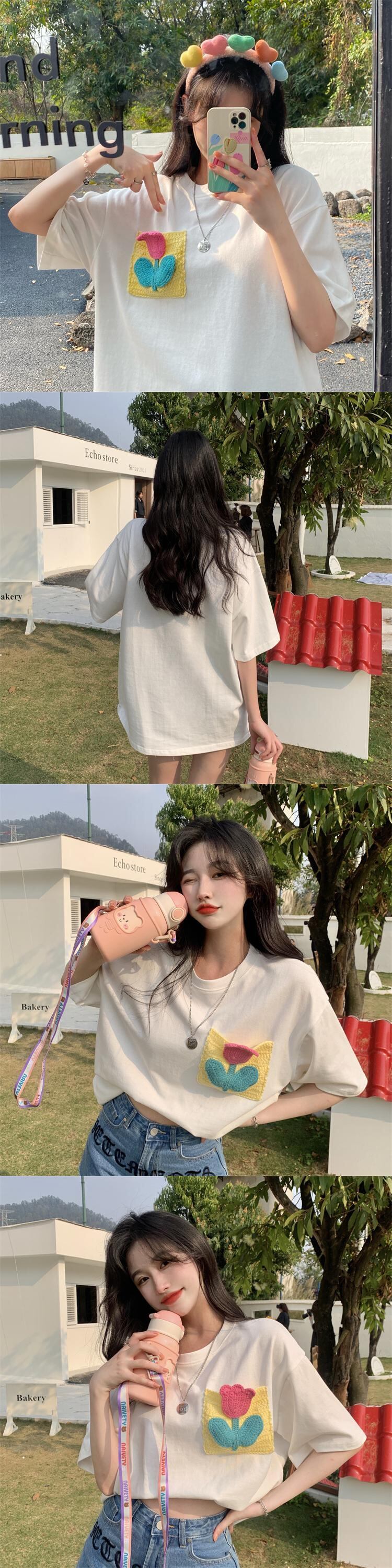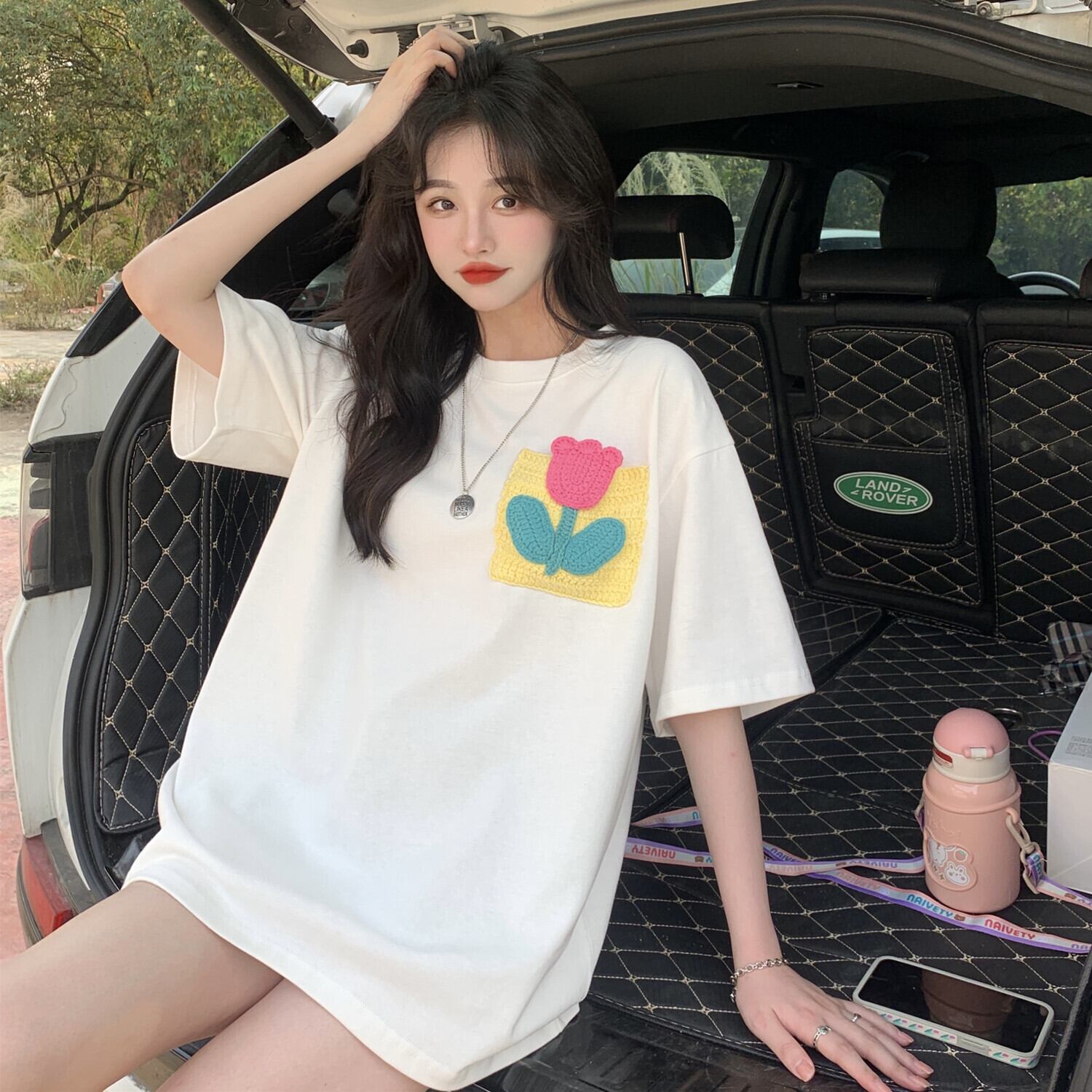 Flowerデザイン Tシャツ夏服ワンピースルーズトップス コットン 夏物 フラワーデザイン コーデ Marchs94684446627
