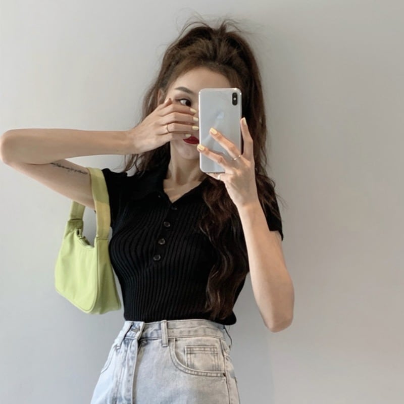 スプリング夏服カラーニットショートホワイトTシャツレディースゆったりトップス 春物 夏物 コーデ Marchs34845345272