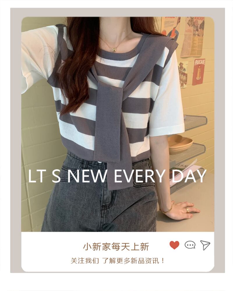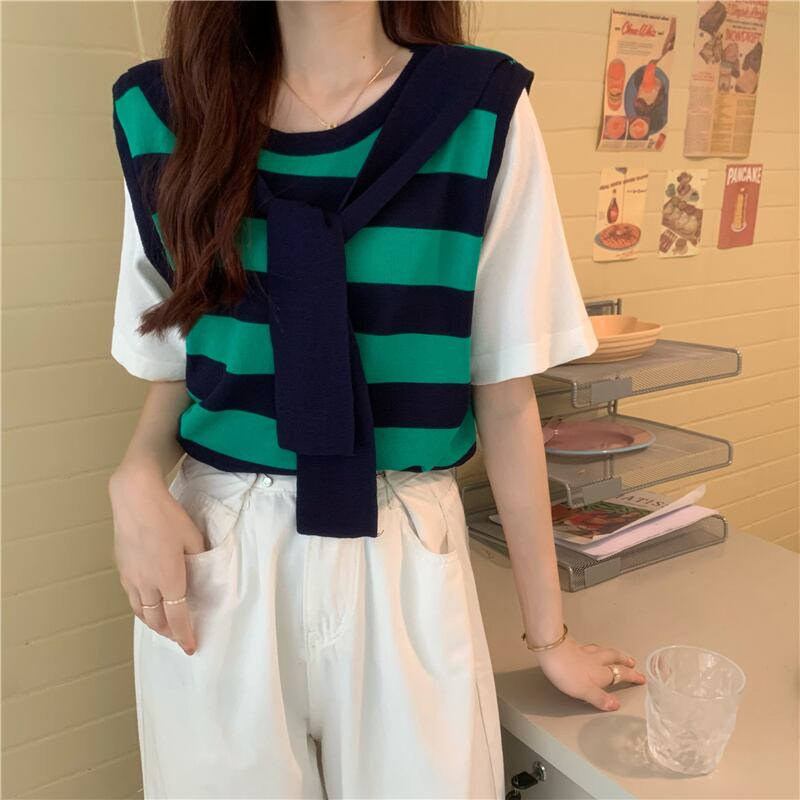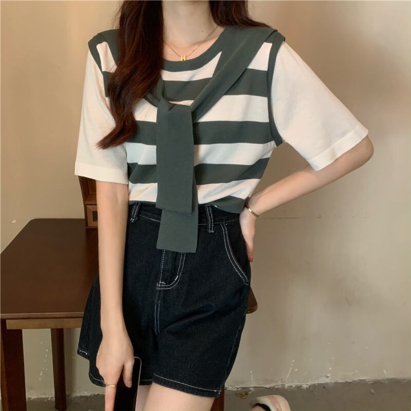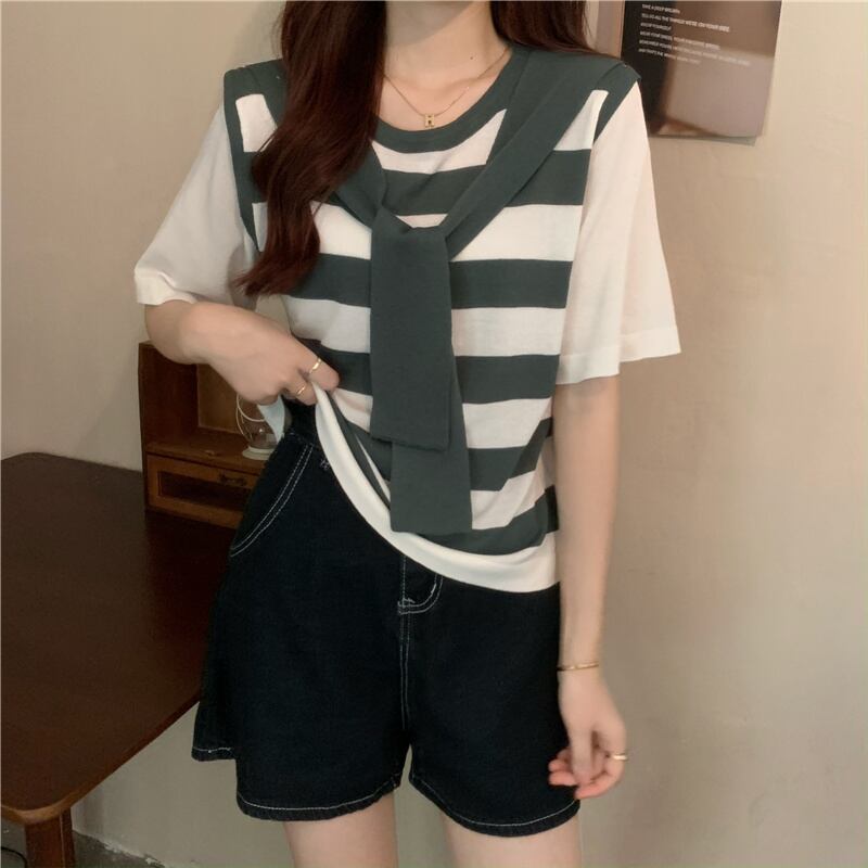 Tシャツ夏服スリムストライプトップス 夏物 コーデ Marchs66512089167