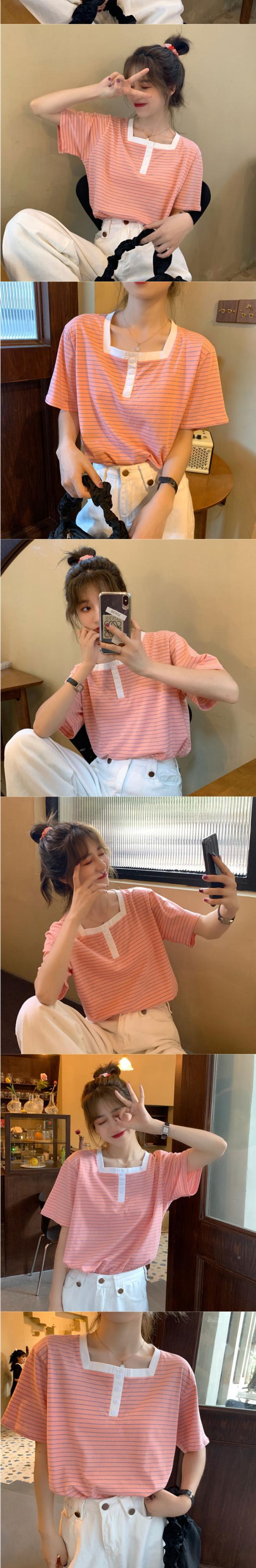 スタイルストライプTシャツ夏服ルーズトップス パンツ 夏物 コーデ Marchs76439233850