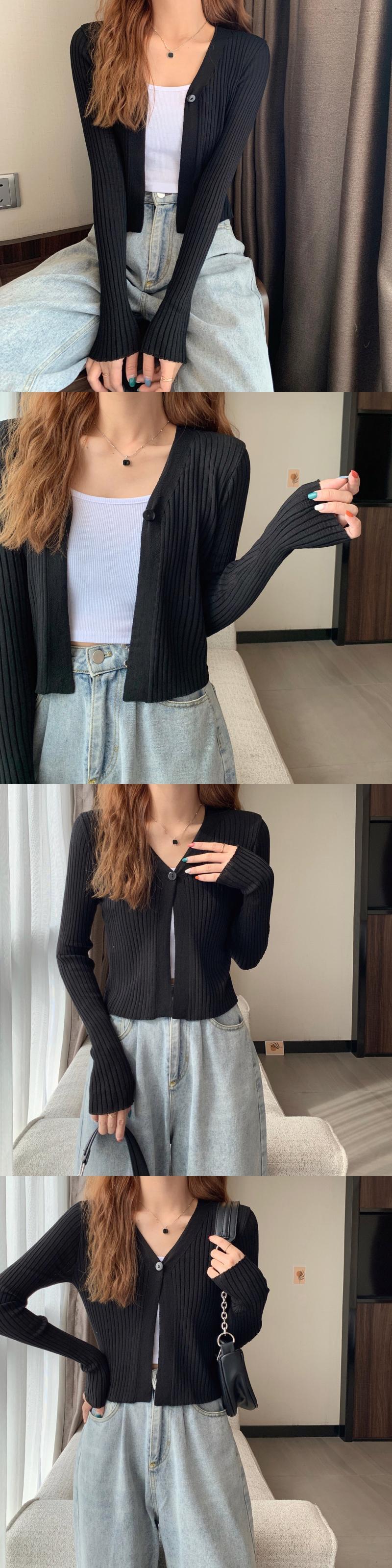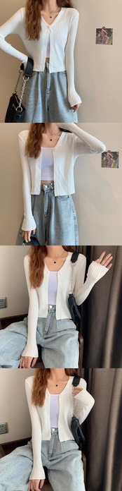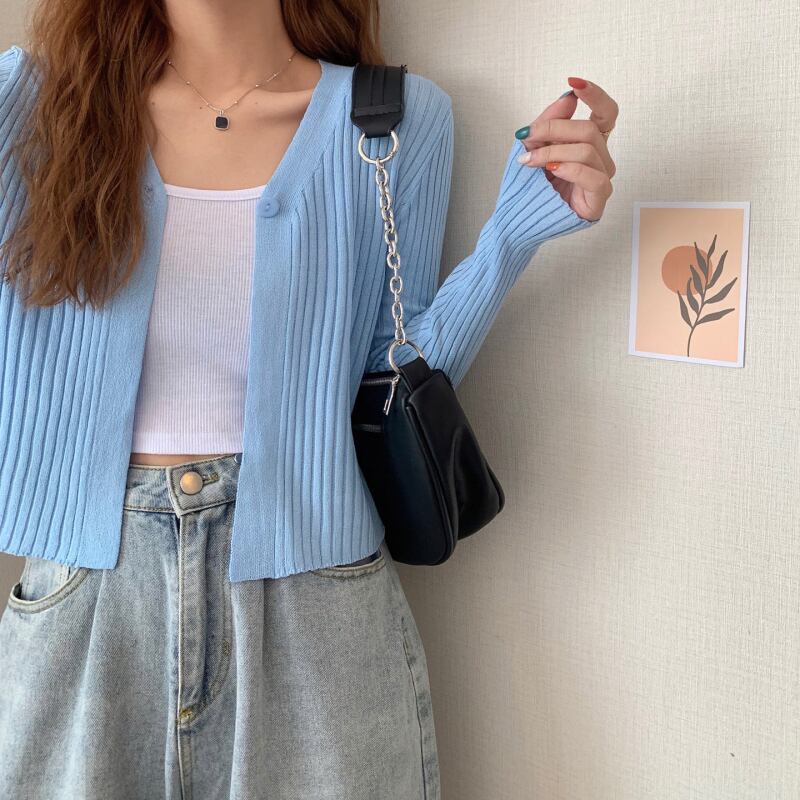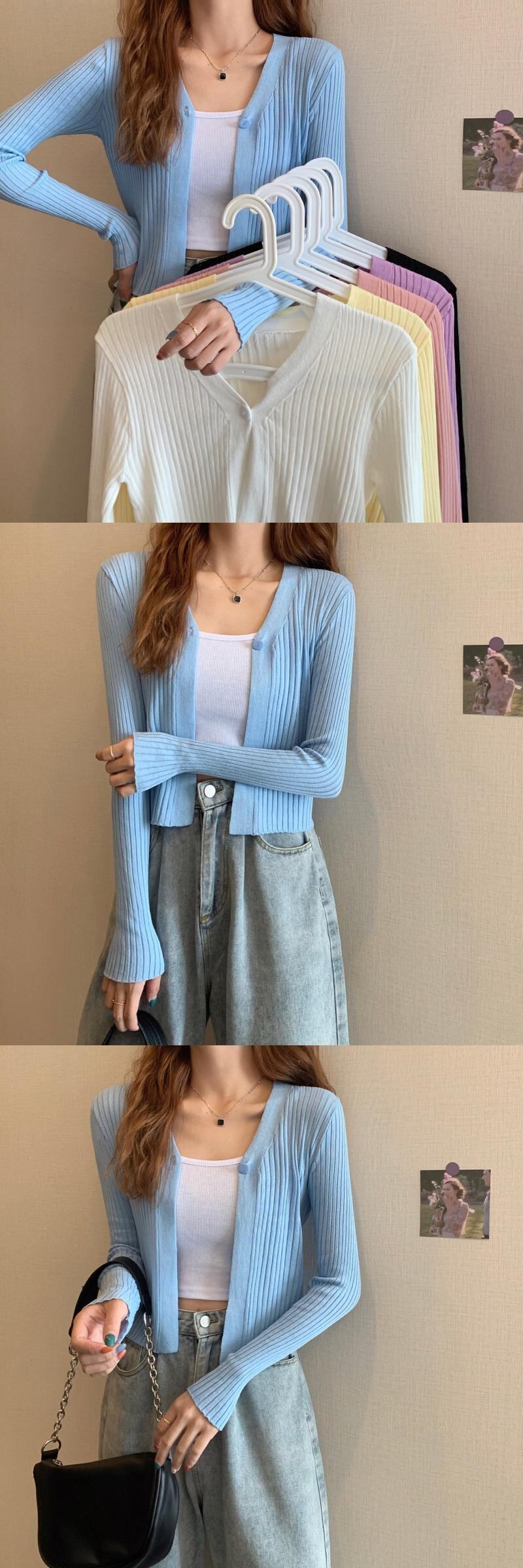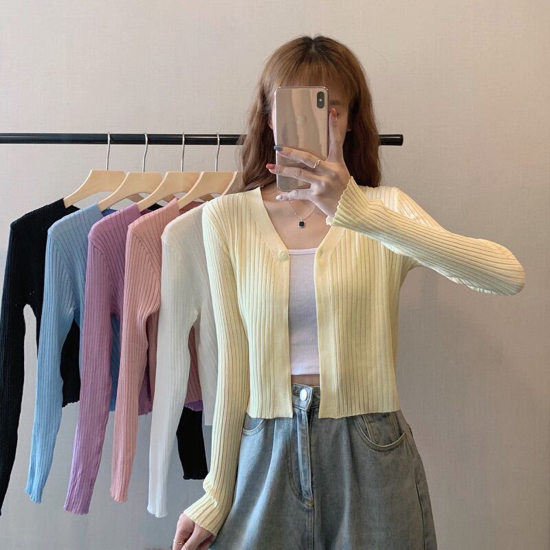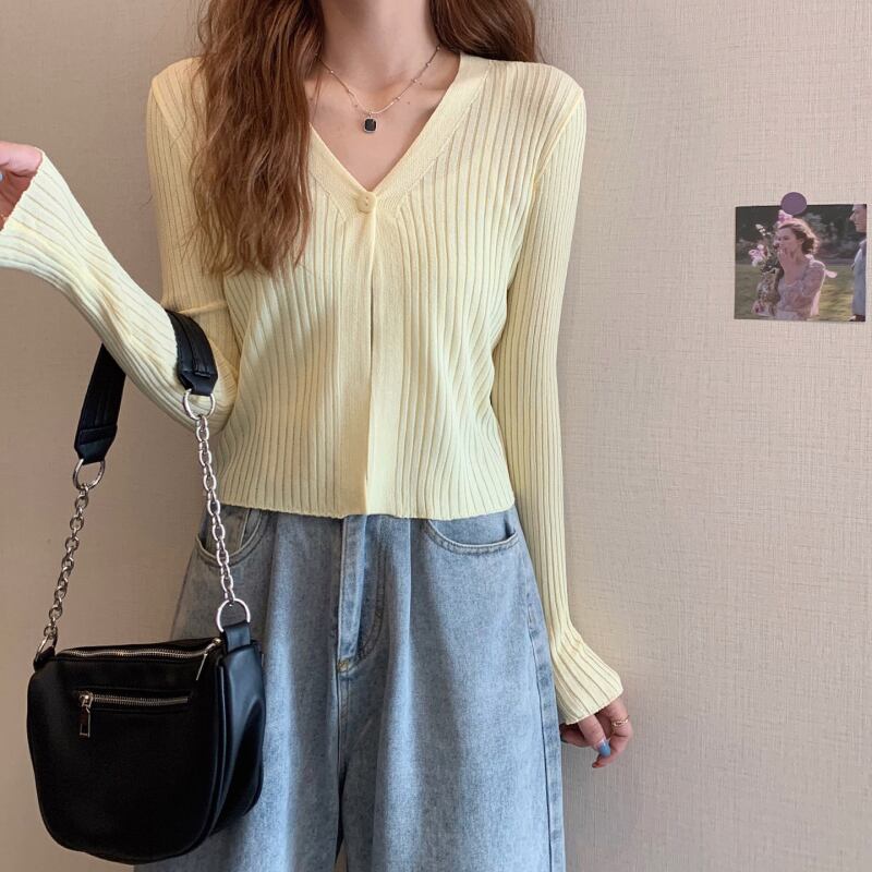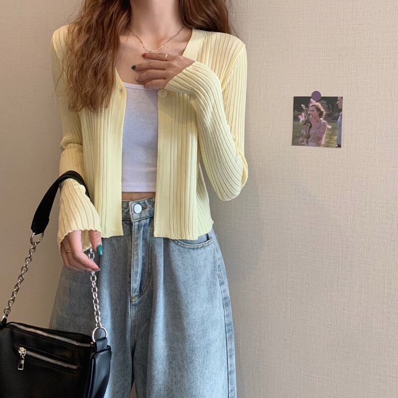 夏服スリムソリッド カラーVネックニットカーディガンジャケット レディースショートトップス 夏物 ソリッドカラー コーデ Marchs16022751571