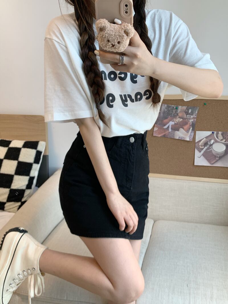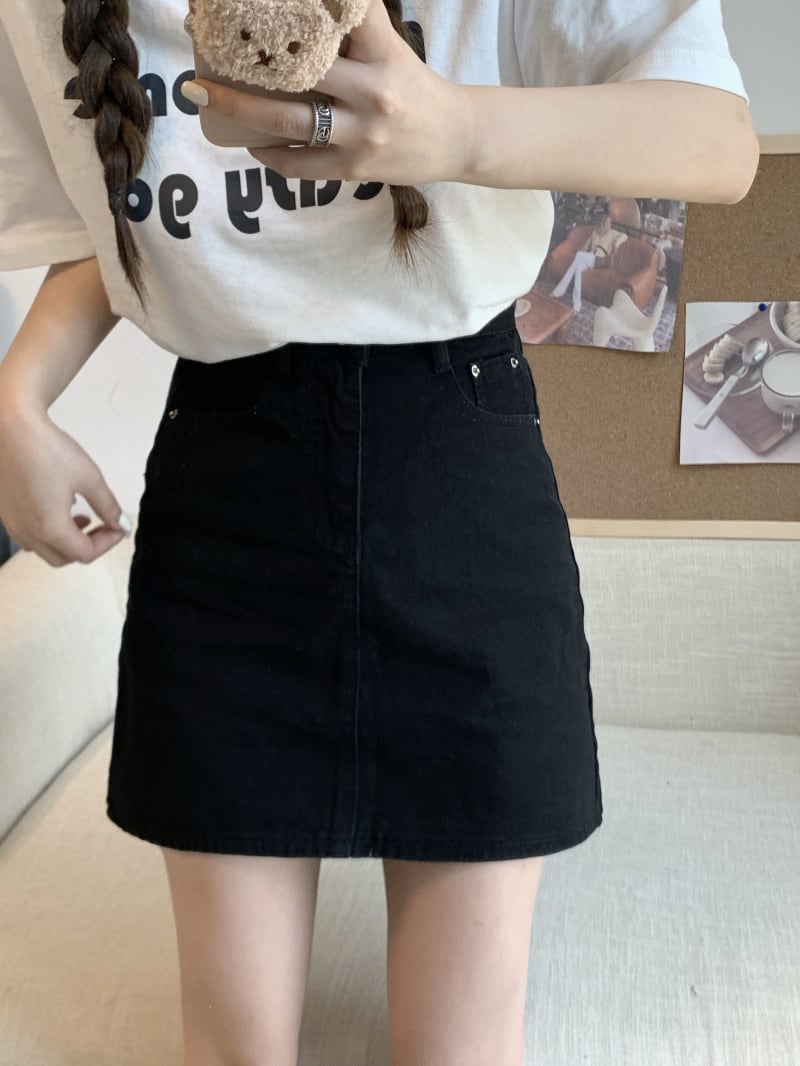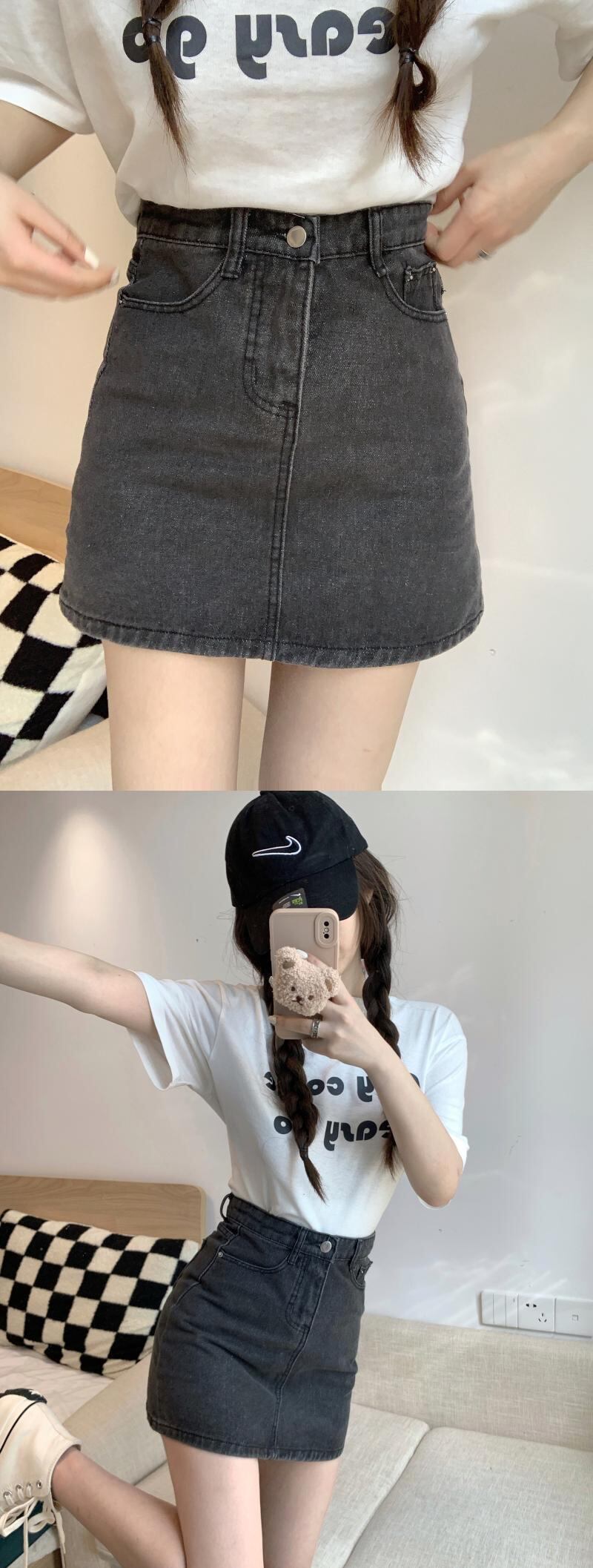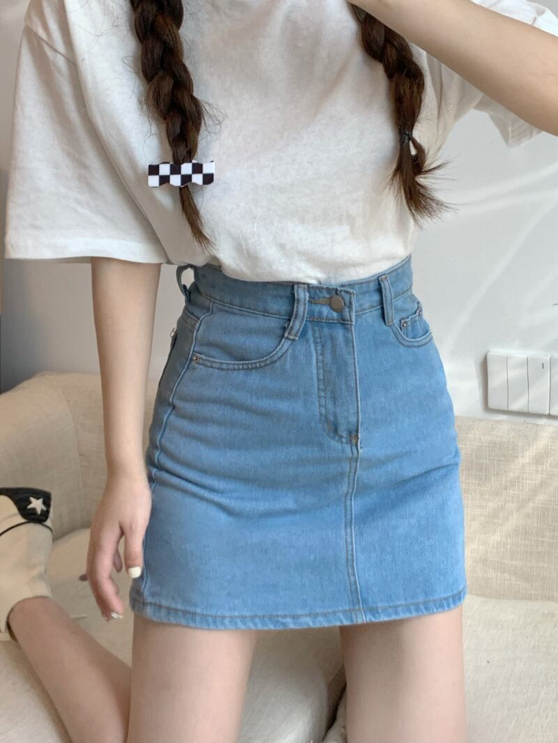 ブルースカート 夏服薄手ハイウェストウェストAラインショート 夏物 ウエスト コーデ Marchs41797038034