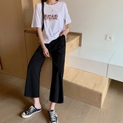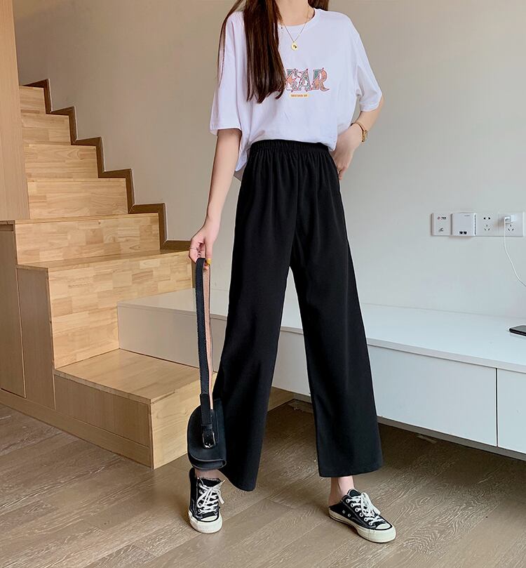 ブラックストレッチウェストカジュアルパンツ 夏服ワンピースハイウェストルーズワイドレッグ エラスティック 伸縮 夏物 ワイドパンツ ウエスト コーデ Marchs54629114295