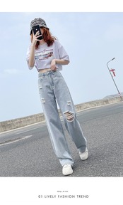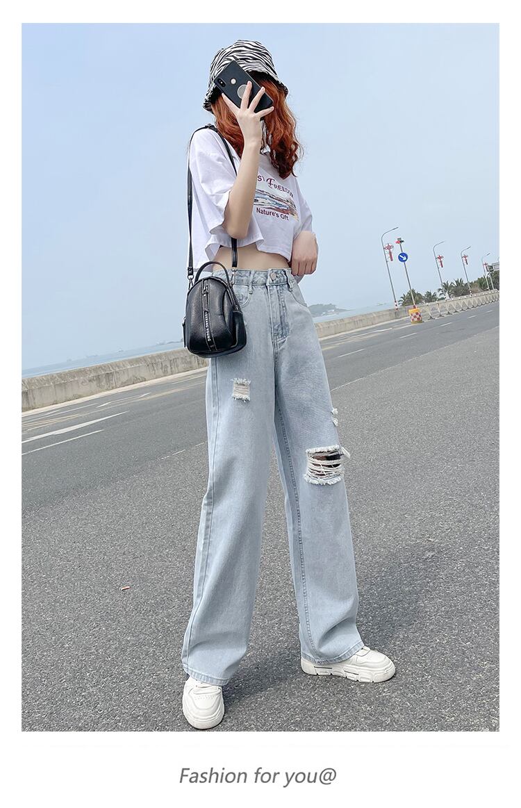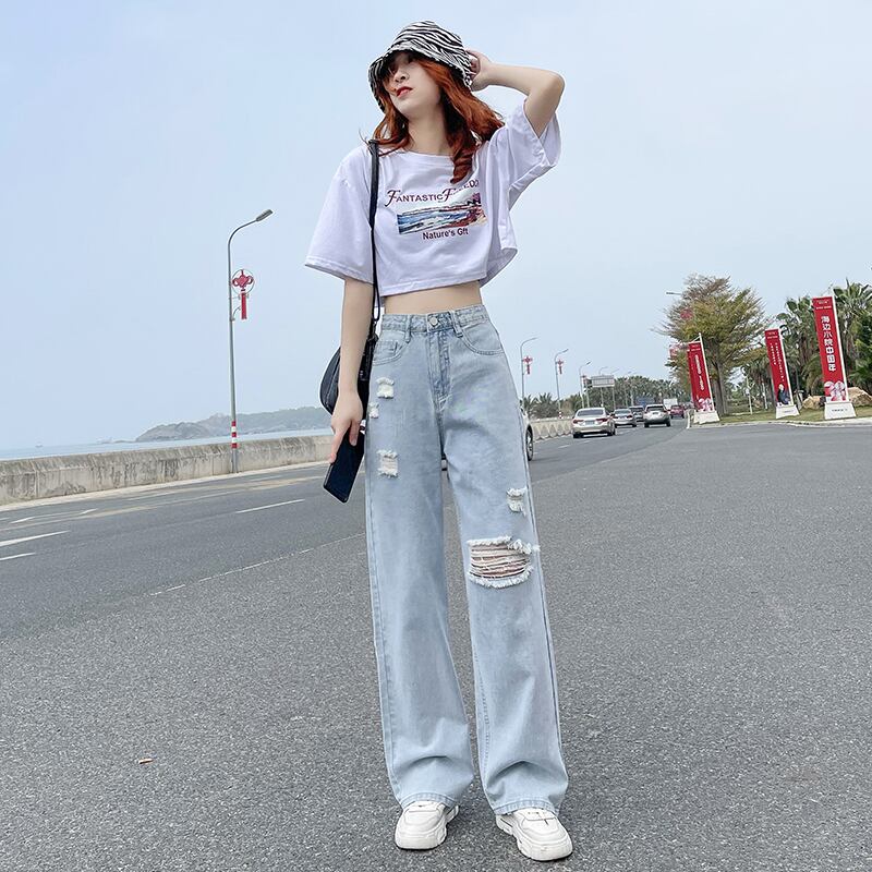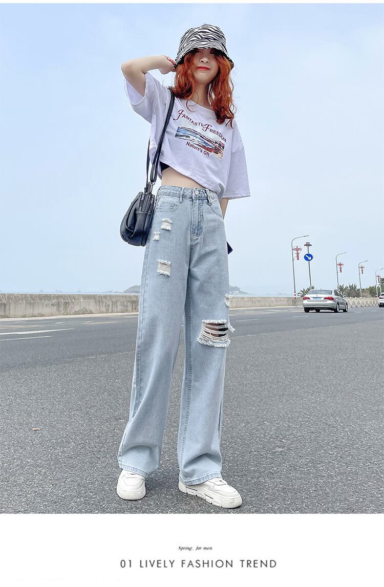 ジーンズ ルーズ夏服薄手韓国ファッションハイウェストウェストNEW 夏物 ワイドレッグ ワイドパンツ スタイル ウエスト コーデ Marchs15547145548