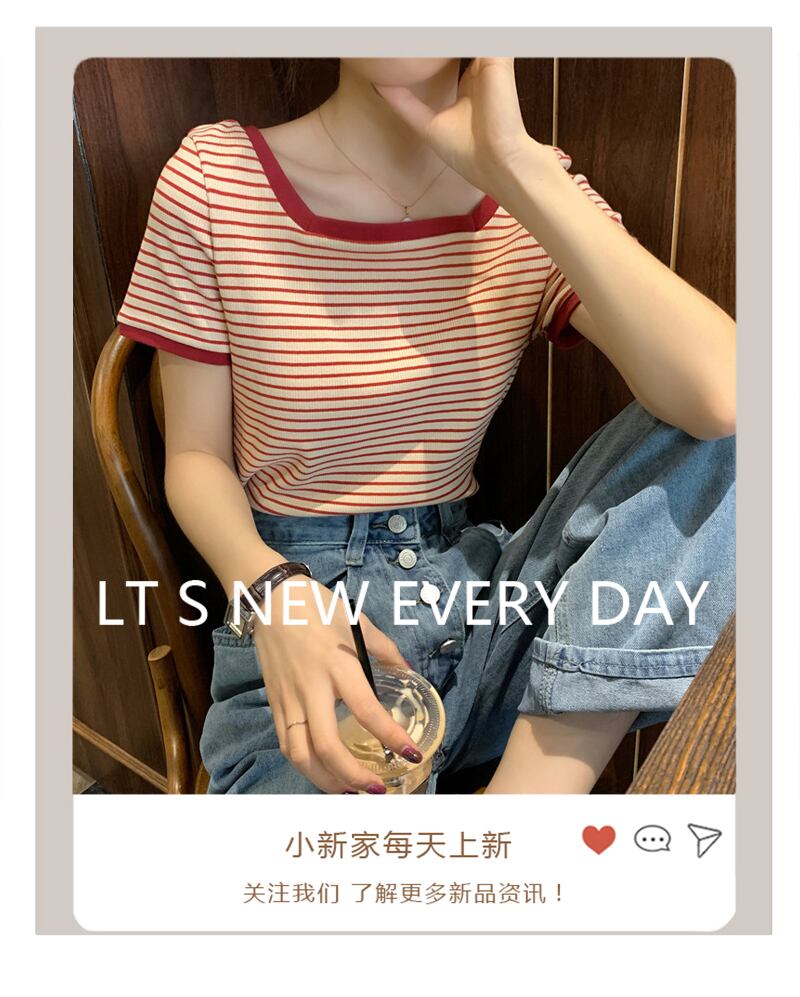 夏服ストライプTシャツシャツ ショートレディースハイウェストカラートップス NEW 夏物 スクウェア ウエスト コーデ Marchs50293150409