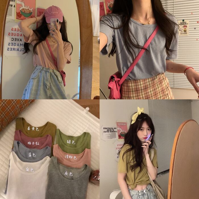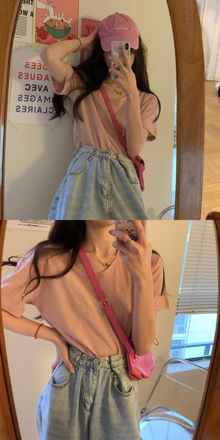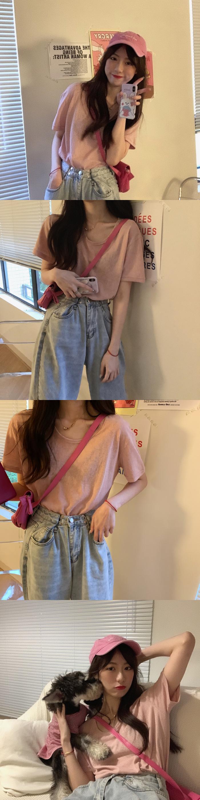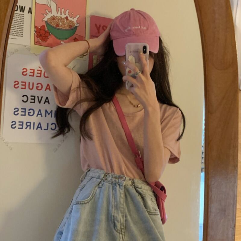夏服スタンダードルーズTシャツNEWラウンドネックトップス ピンク レトロ 大人ガーリー スウィート キュート カジュアル 夏物 Oネック コーデ Marchs13962990751