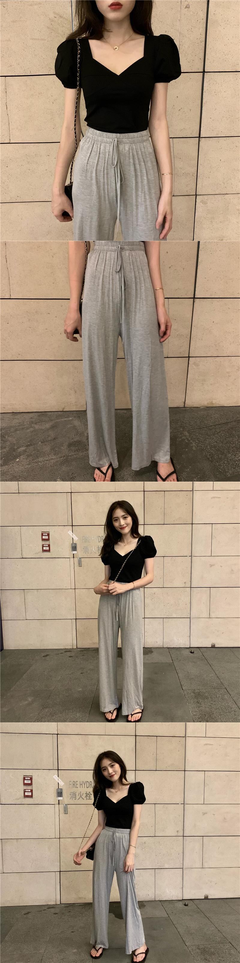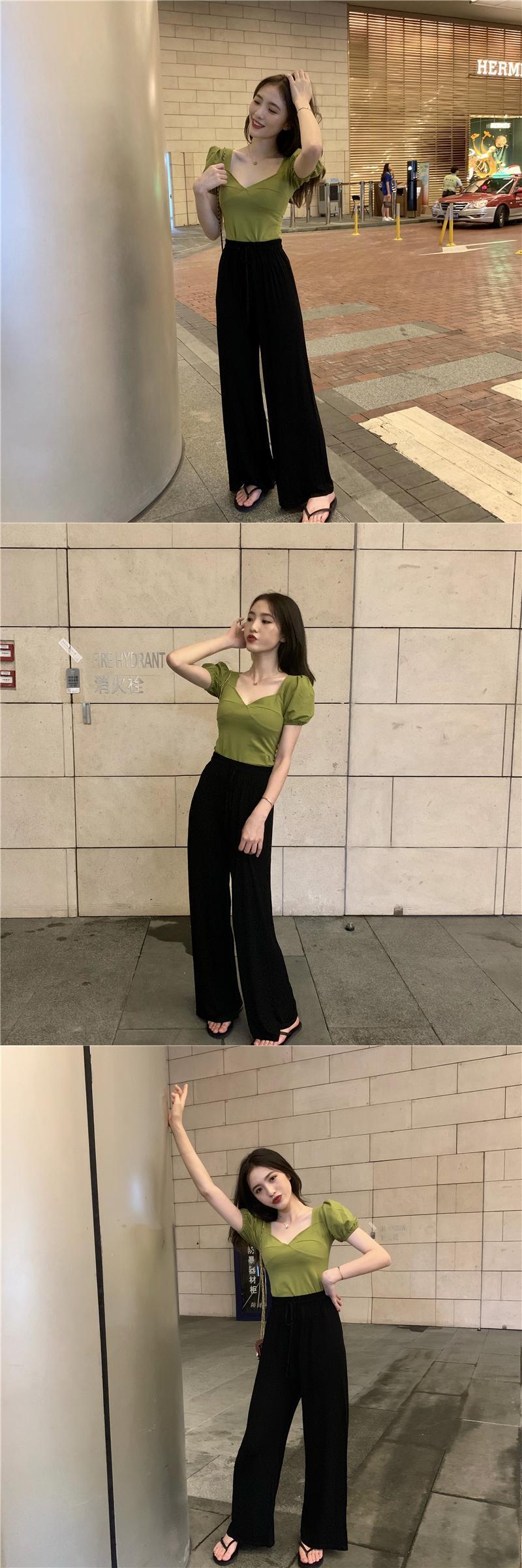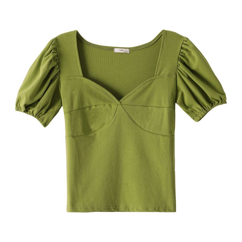 ショートVネックトップス 夏服Tシャツレディース 夏物 パフスリーブ コーデ Marchs87055440735