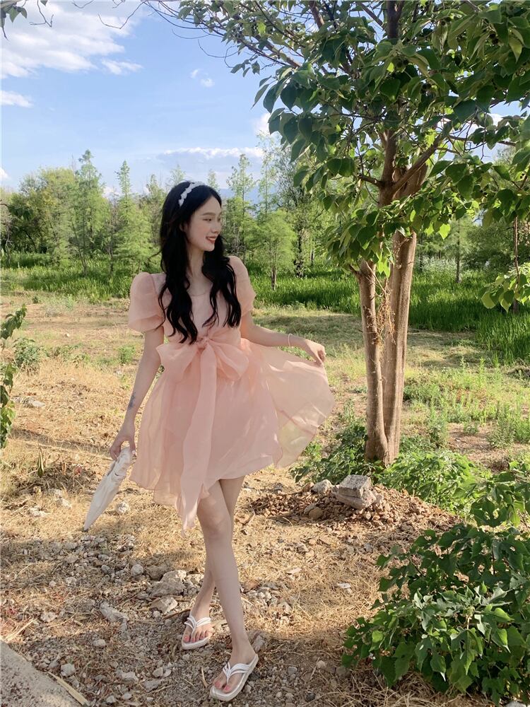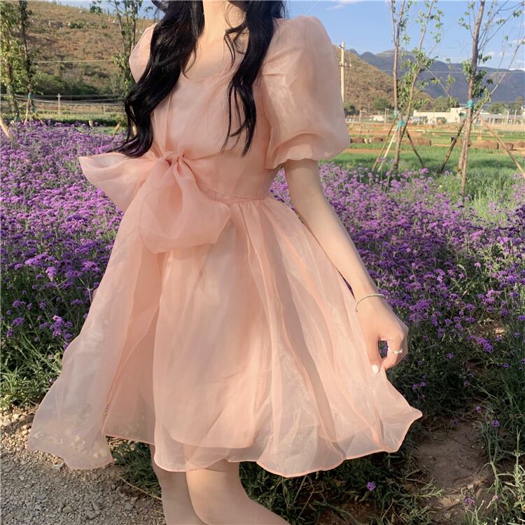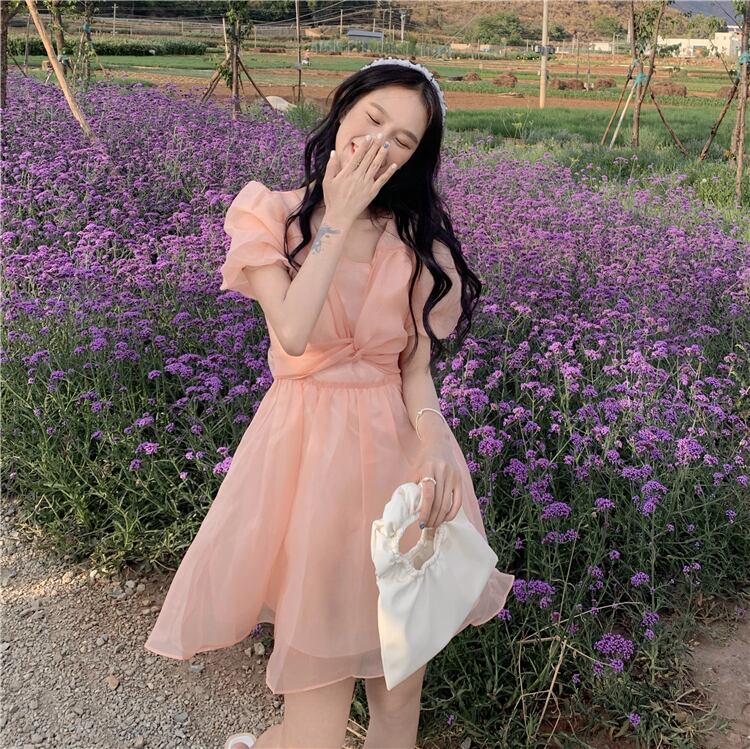 ワンピース夏服スタンダードメッシュスカート レトロ 大人ガーリー スウィート キュート カジュアル ふわふわ 夏物 フラワーデザイン コーデ Marchs7803073961