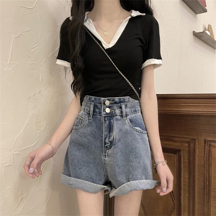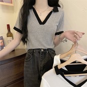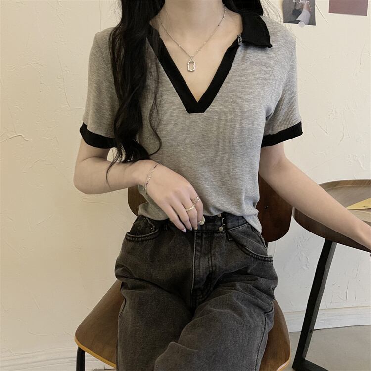 シャツ TシャツVネック夏服カラーハイウェストウェストトップス 夏物 ウエスト コーデ Marchs34009504147
