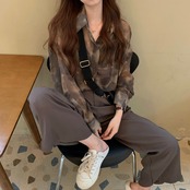 スタンダードシフォンシャツ スプリングルーズ レトロ 春物 ミドル丈 コーデ Marchs5167921362