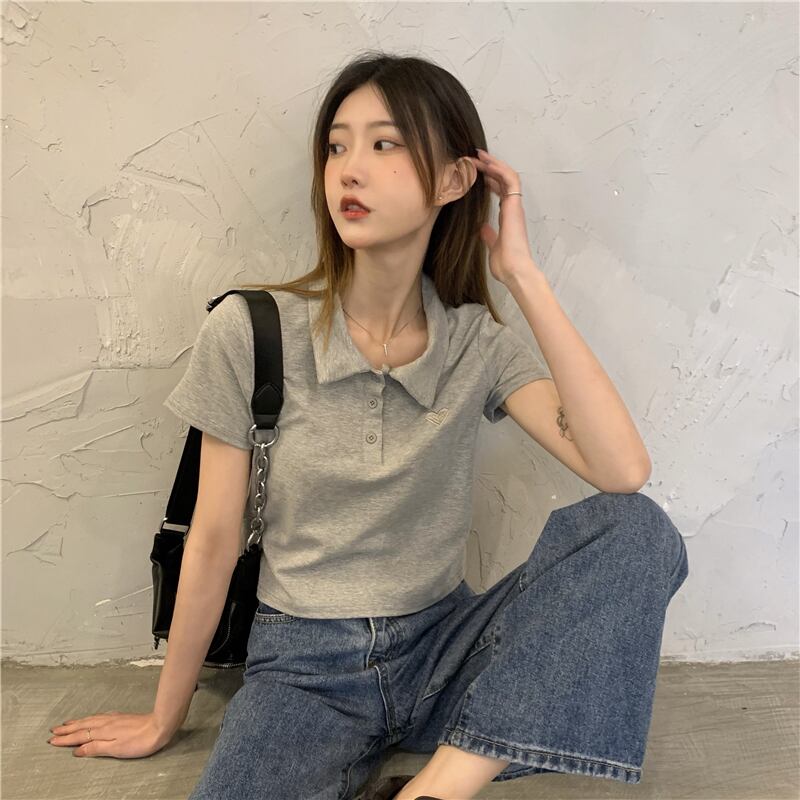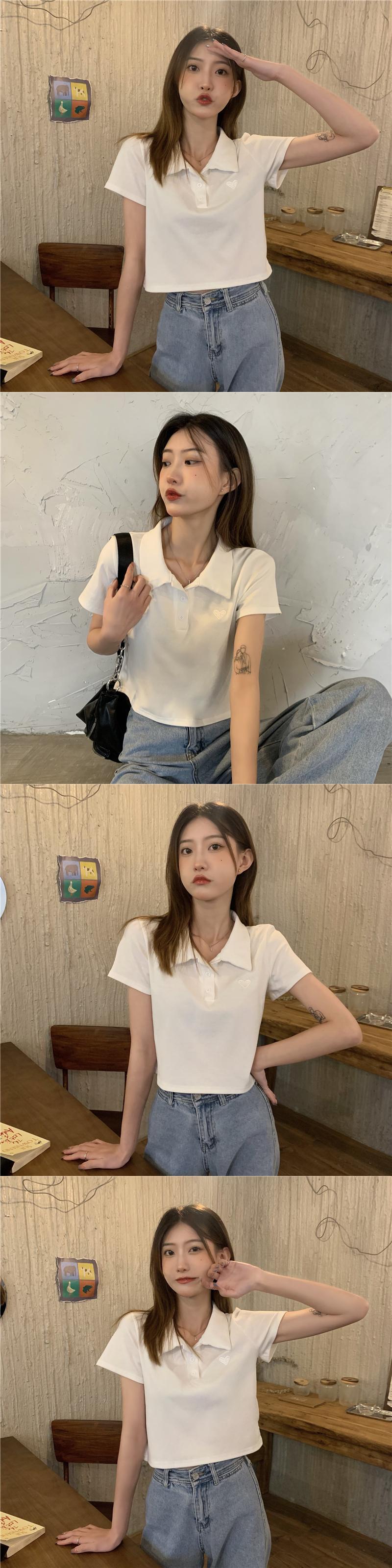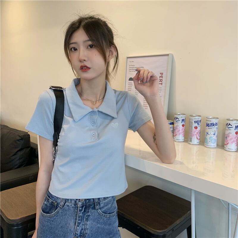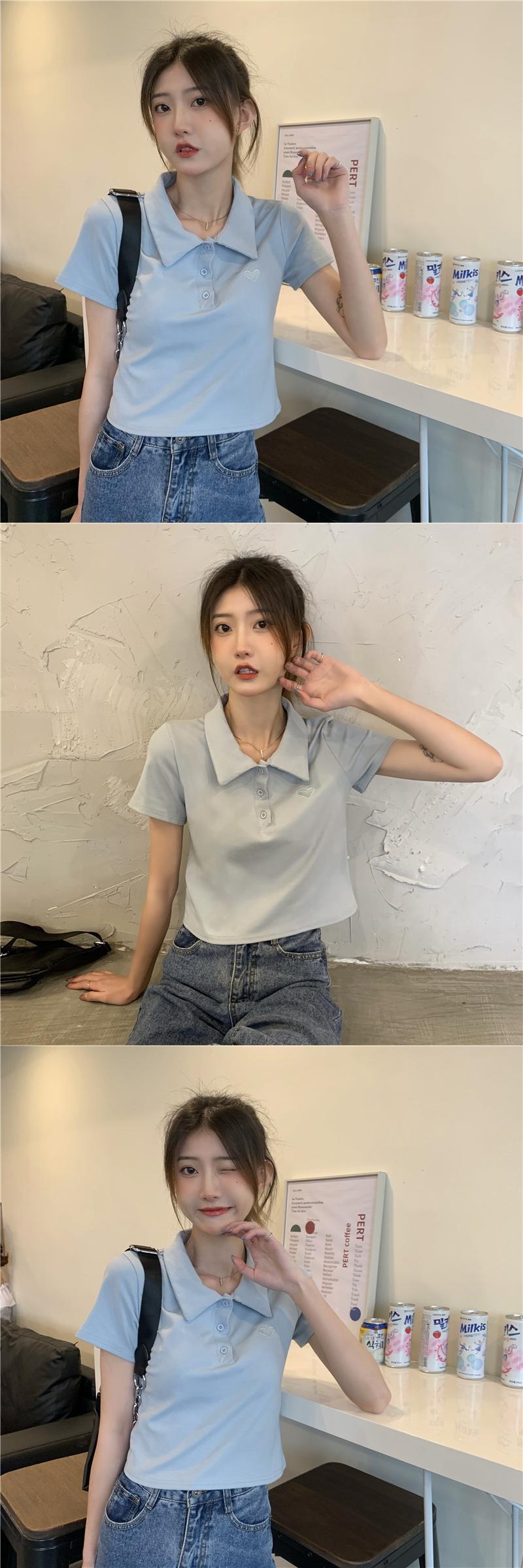 ショートトップス 夏服刺繍シャツ ハイウェストウェストTシャツ ピンク 夏物 ウエスト コーデ Marchs51726791236