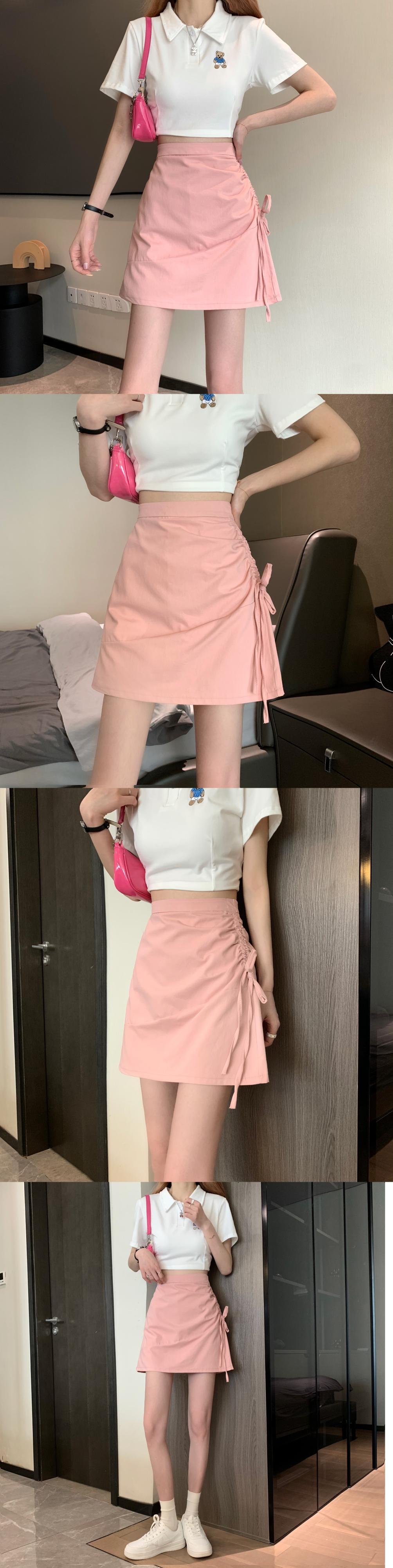 スタイルギャザーAラインスカート 夏服ショート薄手ハイウェストウェスト 大人ガーリー スウィート キュート カジュアル 夏物 ウエスト コーデ Marchs4467807973