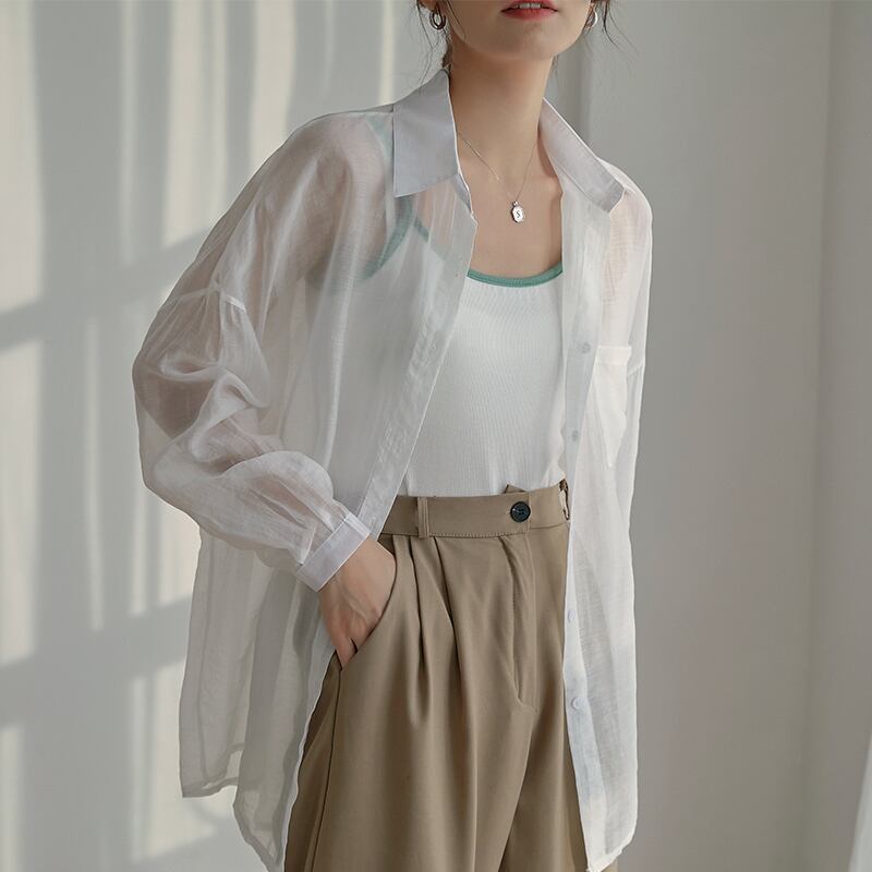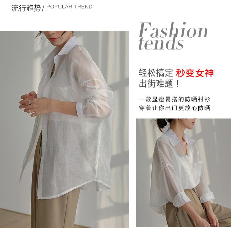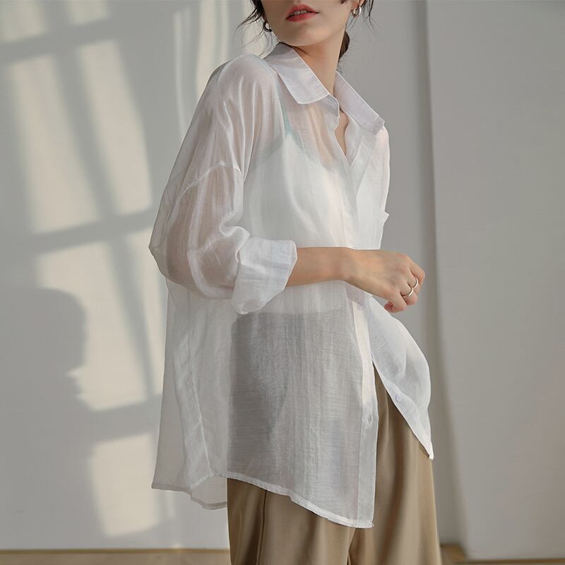 シャツ 夏服薄手ルーズ ロング 夏物 長袖 コーデ Marchs68249867108