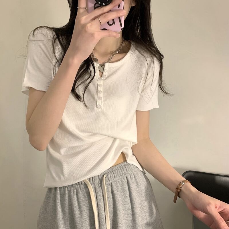 ショートTシャツ夏服スリムスタイルソリッド カラートップス NEW 夏物 ソリッドカラー コーデ Marchs35822462128