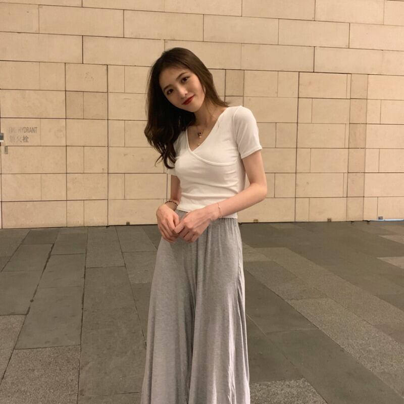 色:ブラックトップ,グレートップ,ホワイトトップ,レッドトップ,グレーのワイドレッグパンツ,黒のワイドレッグパンツ