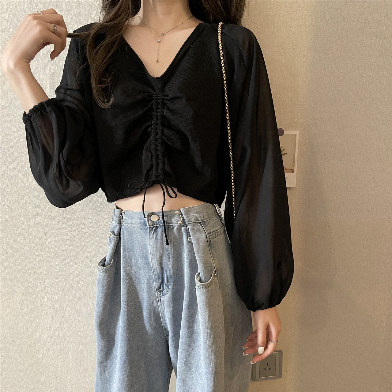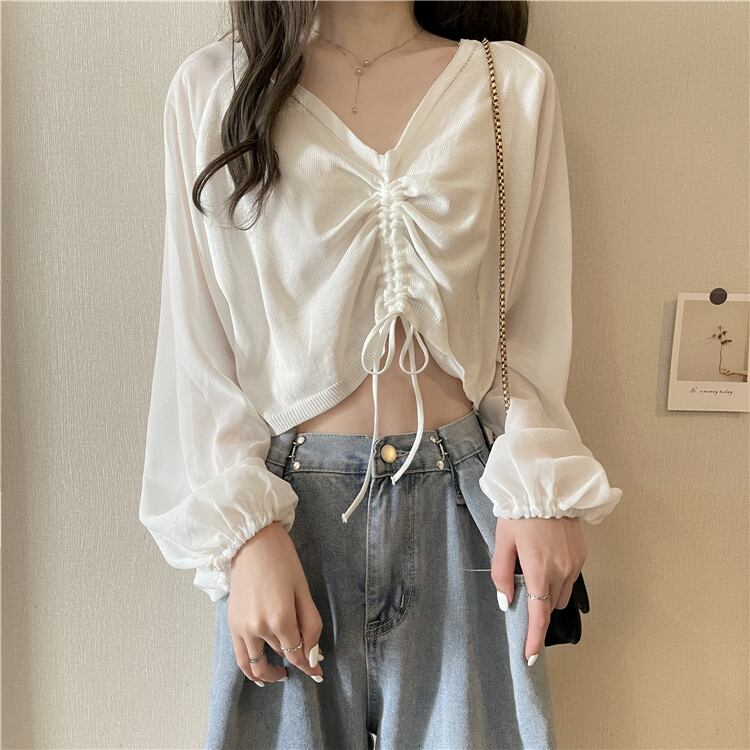 VネックギャザーホワイトTシャツシャツ 夏服ハイウェストショートクロップドブラウス トップス 夏物 ウエスト コーデ Marchs38538332659
