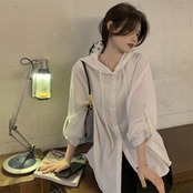 夏服フードシャツ 薄手ルーズホワイトジャケット ロング 夏物 シルク 長袖 コーデ Marchs3747937376