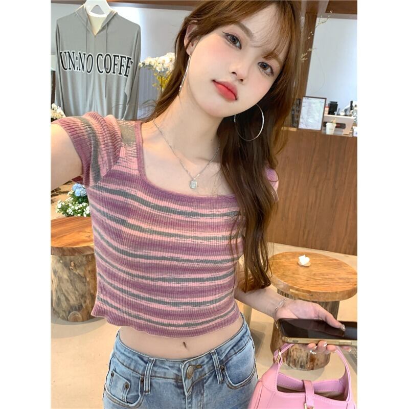 ストライプショートTシャツトップス 夏服ワンピース 夏物 ピュア スクウェア コーデ Marchs44989208344