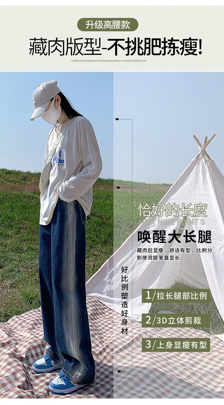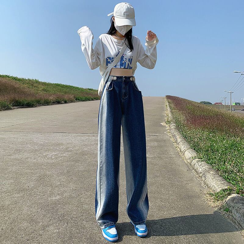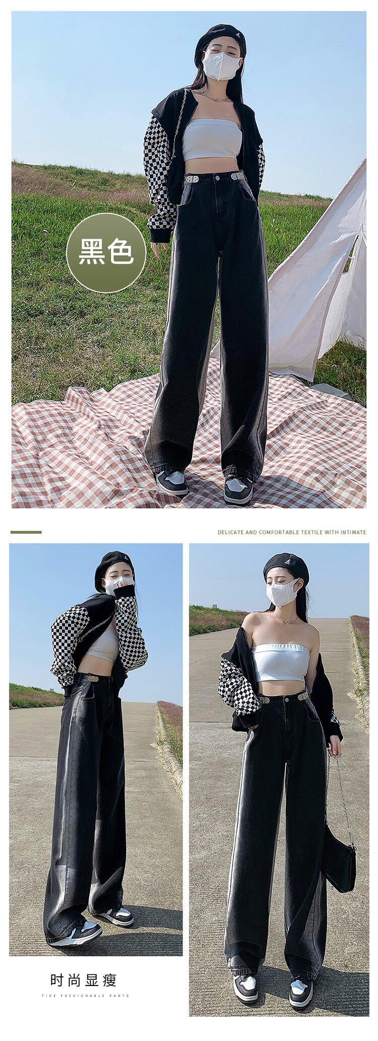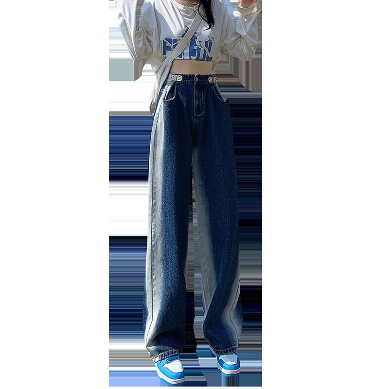 カラージーンズ ハイウェストウェスト薄手ルーズワイドレッグパンツ ワイドパンツ ウエスト コーデ Marchs88232634282